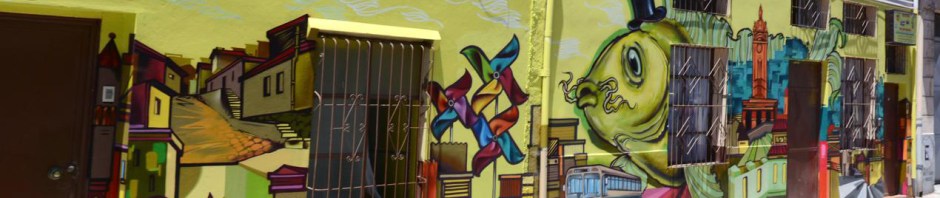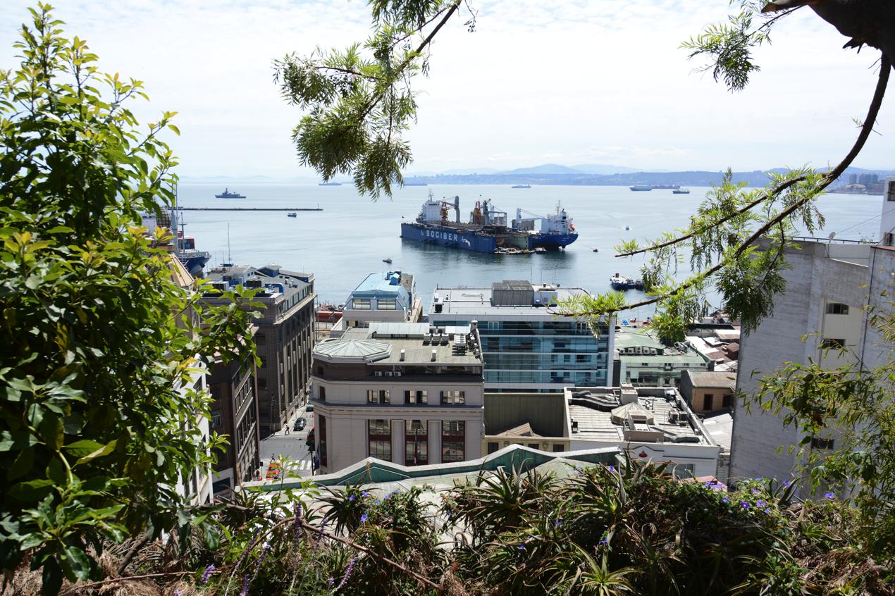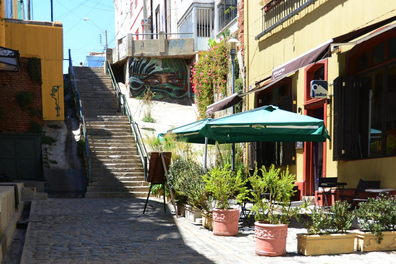 After a late breakfast we set out to explore Valparaiso on foot. One of the advantages of the hotel is its commanding position and view. Unfortunately this is also a disadvantage because it means to get back to the hotel you have a significant climb. This is one of the streets back to where our hotel is. Our terrace can be seen at the top right of the photo with a market umbrella.