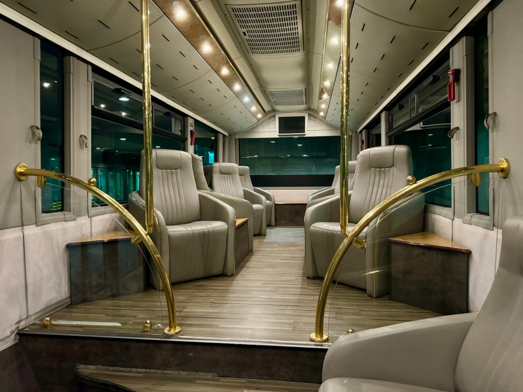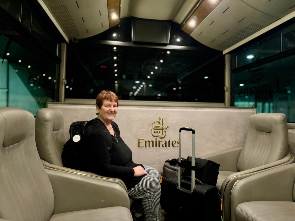 We were greeted by a First Class hostess as we got off the aircraft and escorted to a bus to take us across to the other side of the airfield. This was no ordinary bus – very comfy seating.