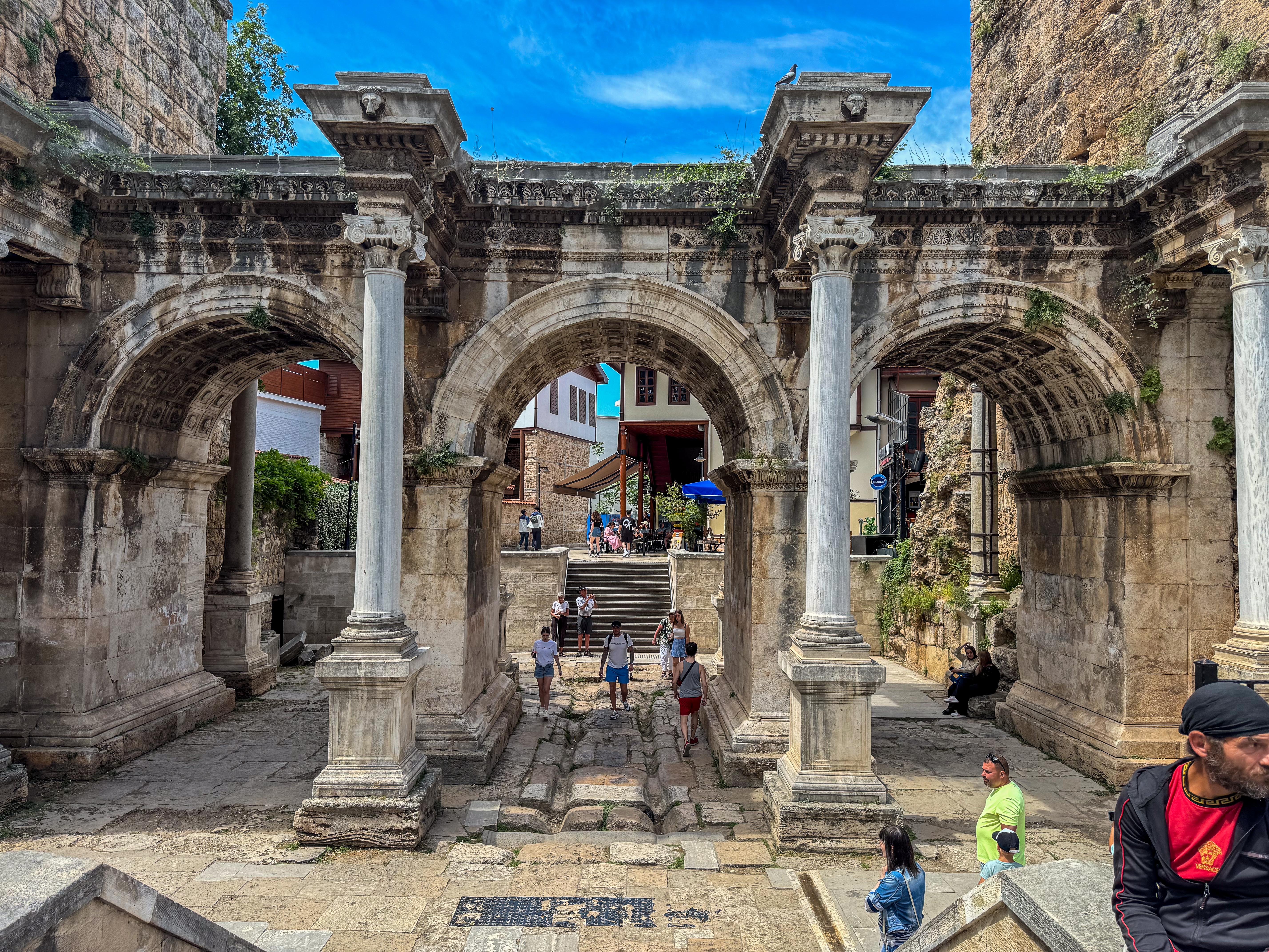 Hadrian’s Gate is a memorial gate built in the name of the Roman emperor Hadrian, who visited the city in 130 CE.