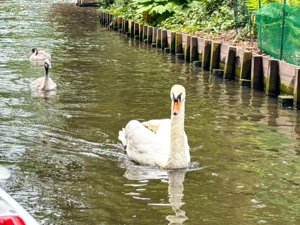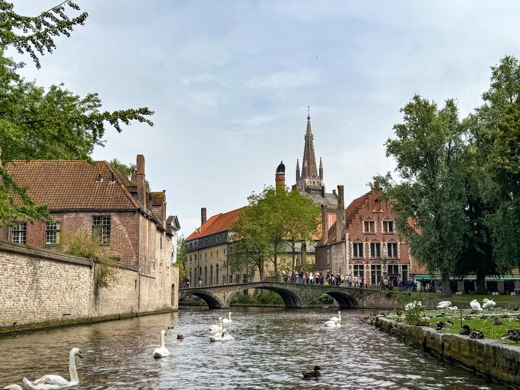 Cygnets with mum. The presence of swans in Bruges is from a legend here https://www.greenparkhotelbrugge.com/en/blog/the-legend-of-the-swans-in-bruges-explained#:~:text=Legend%20says%2C%20the%20emperor%20eventually,Bruges%20would%20fall%20to%20ruin.