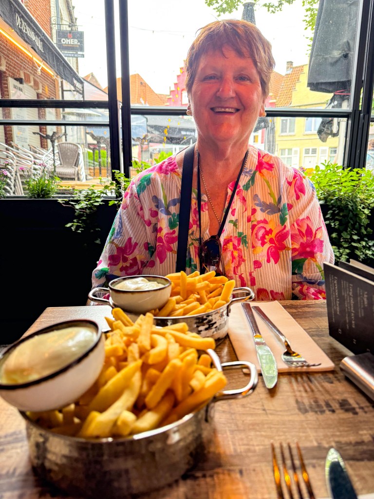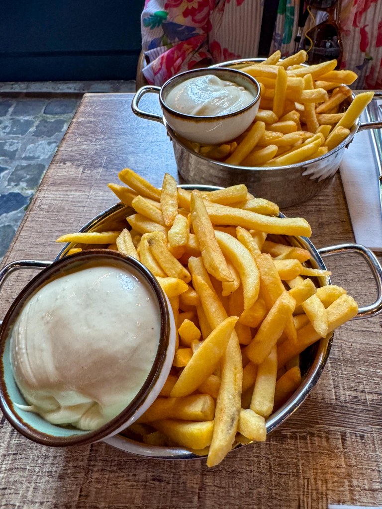 At the end of the tour we had some free time so found a chocolatier and bought some handmade Bruge/Belgian chocolate which may not make it back to Australia! We then went to a cafe and had an aperol spritz and some Belgian fries with mayonnaise – a Bruges specialty. Oh, and of course we found some Belgian chocolate, but no pics of that!