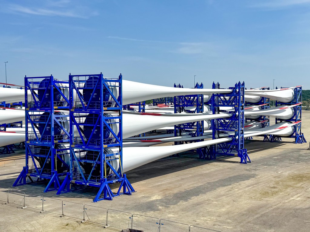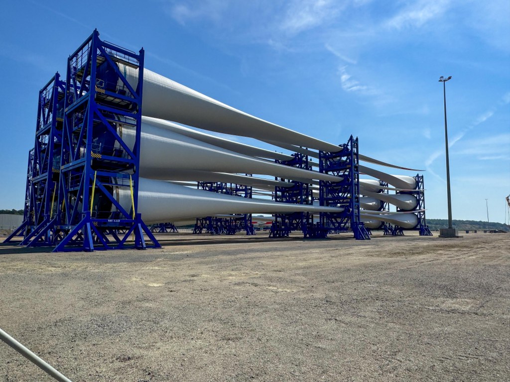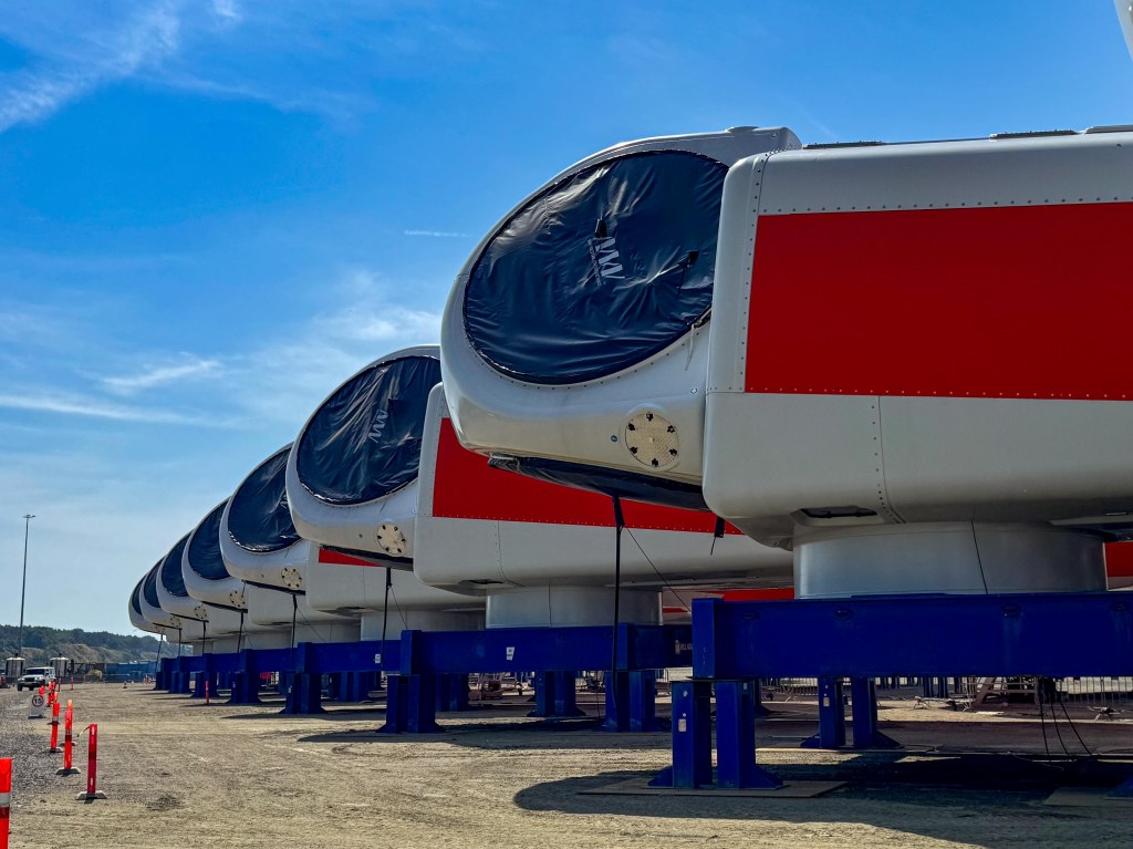 Next to our ship on the dock was a stockpile of wind turbines waiting to be shipped to Germany. They get loaded onto an installation ship four at a time which then sails to the destination and installs them.