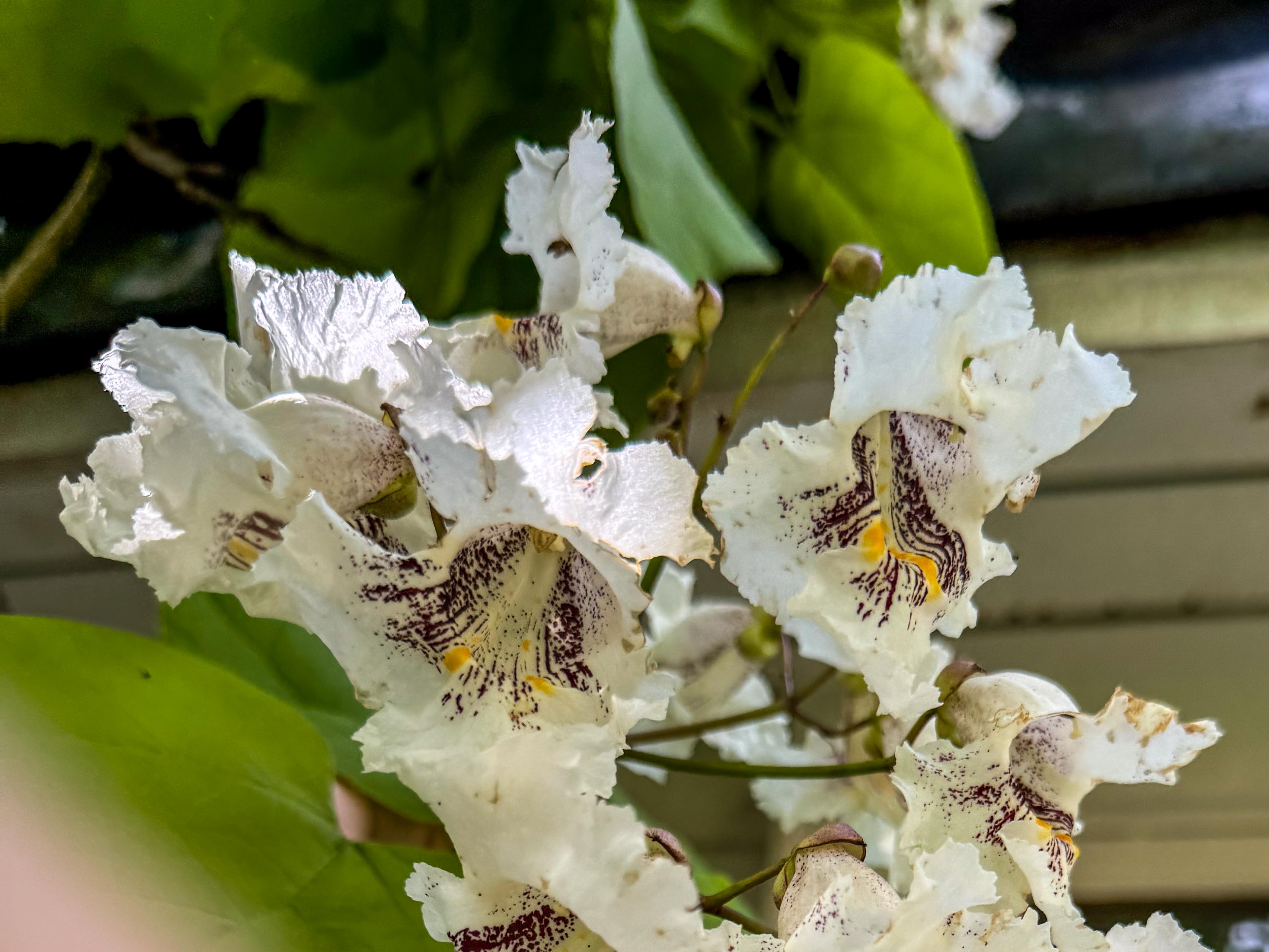 While having a close look at one of the houses, an occupant came out and invited us to come in and have a look at the garden. The house itself was in the process of being completely renovated inside. The garden was a bit overgrown but had great potential and there was a large tree in the centre with magnificent flowers.