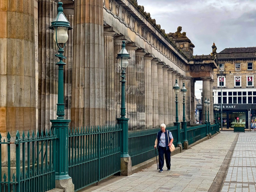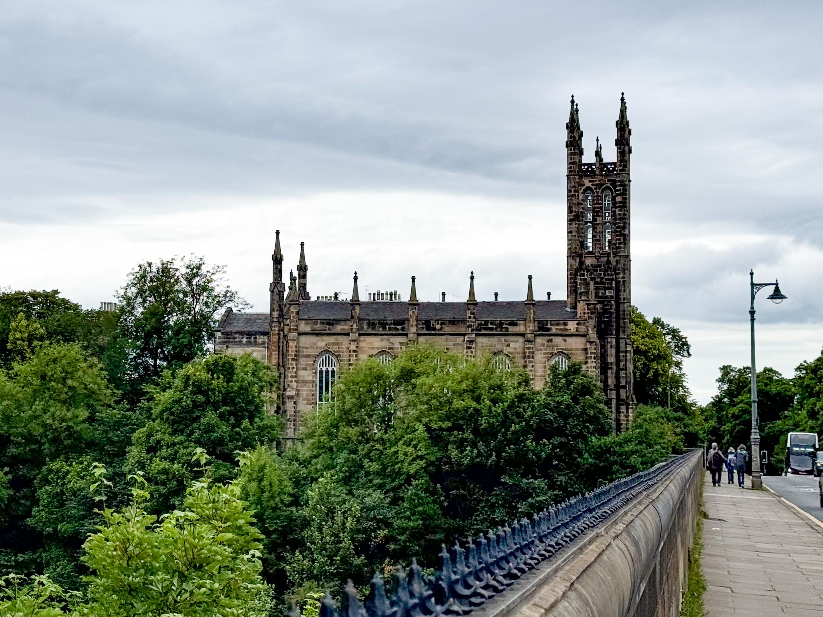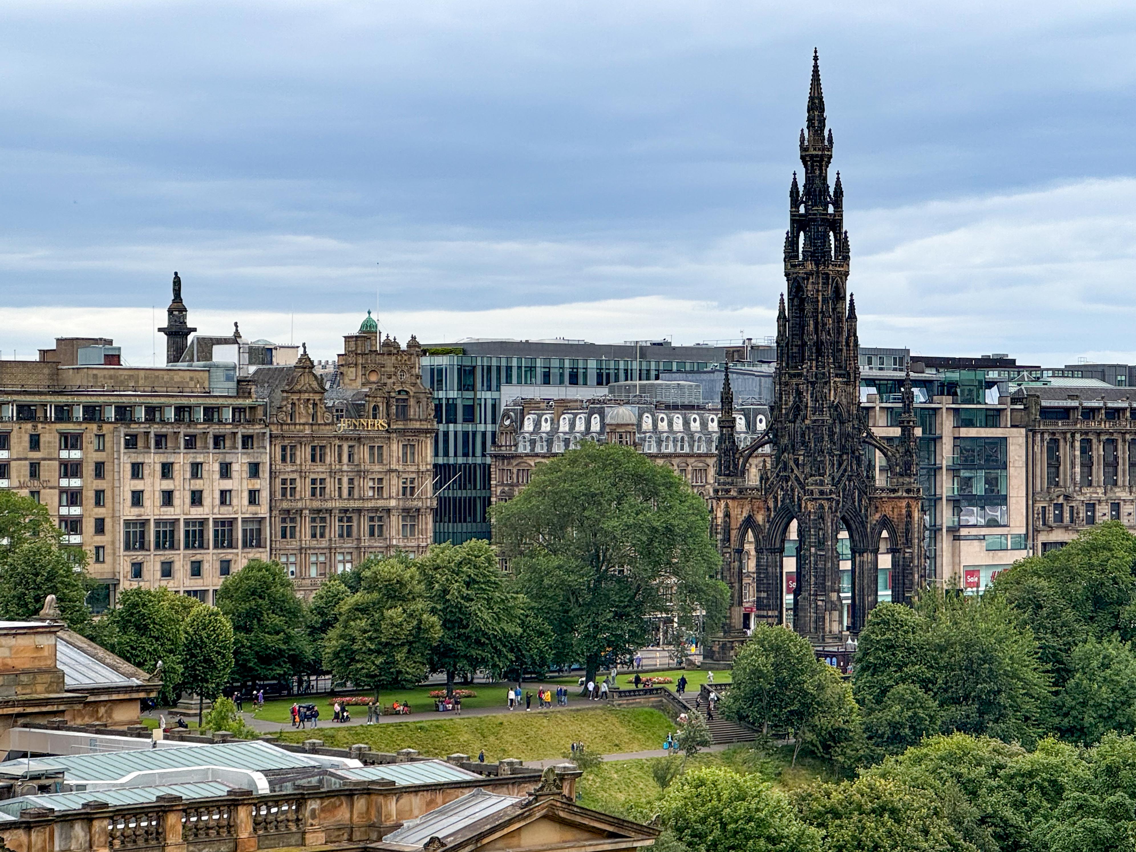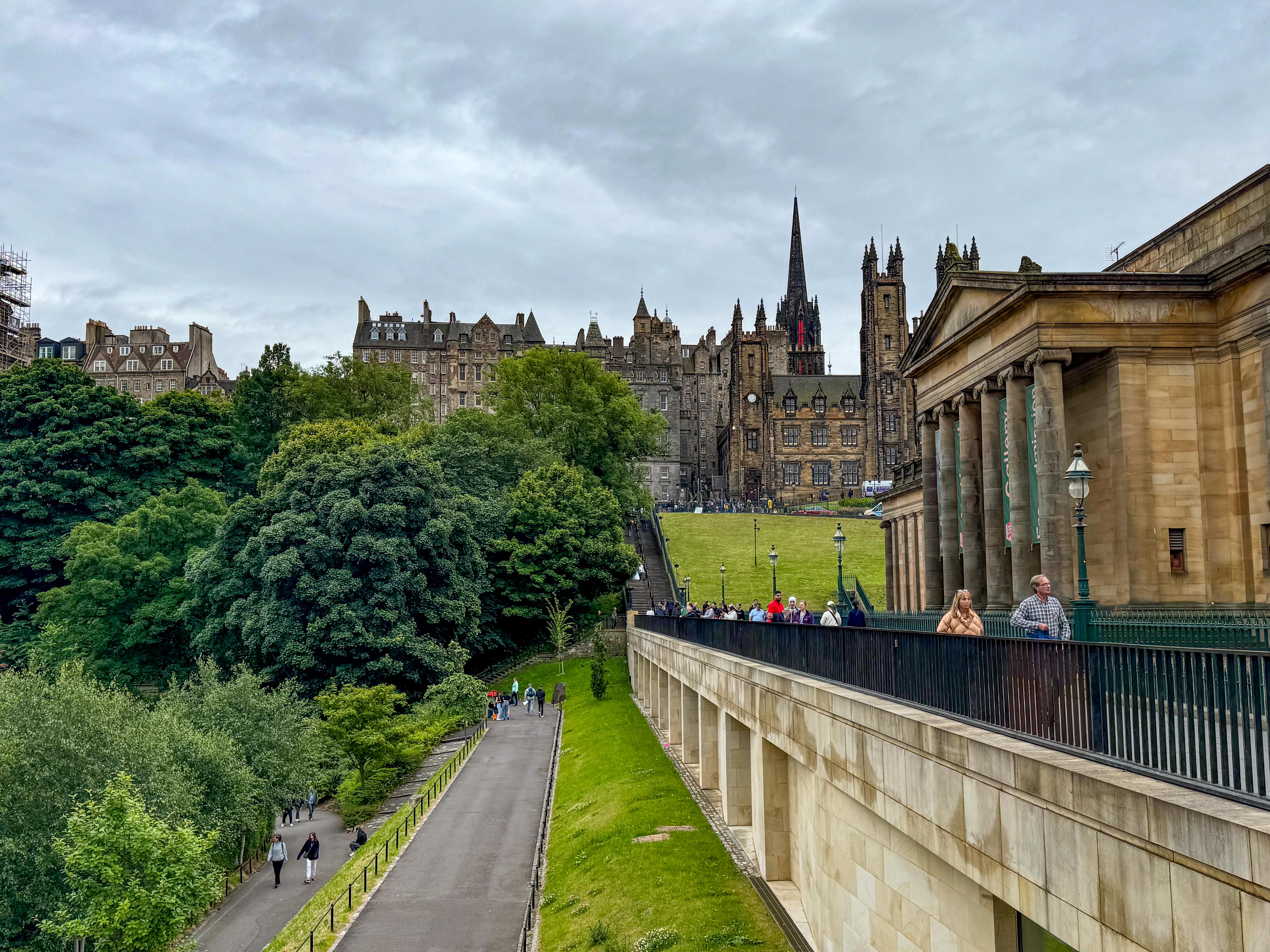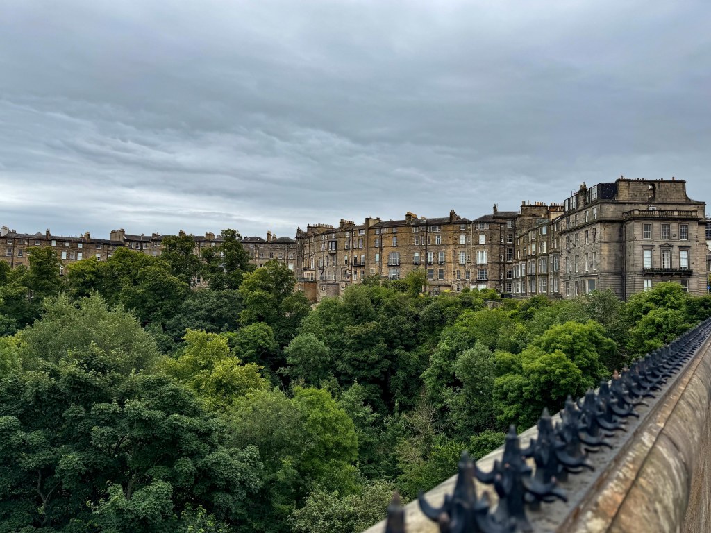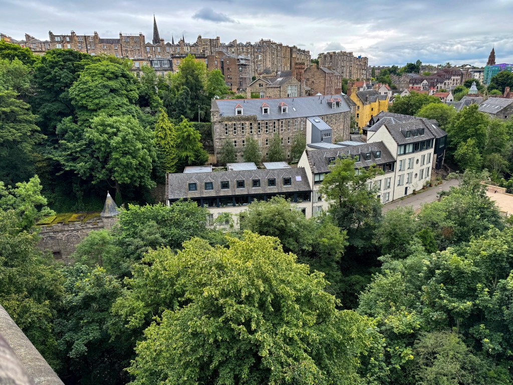 Stopped in Edinburgh today. Caught a tram to Princes Street walked up the mound to the Royal Mile then back down through the gardens and then to Dean Bridge. Cool windy and overcast. A normal summer day someone unkindly said!