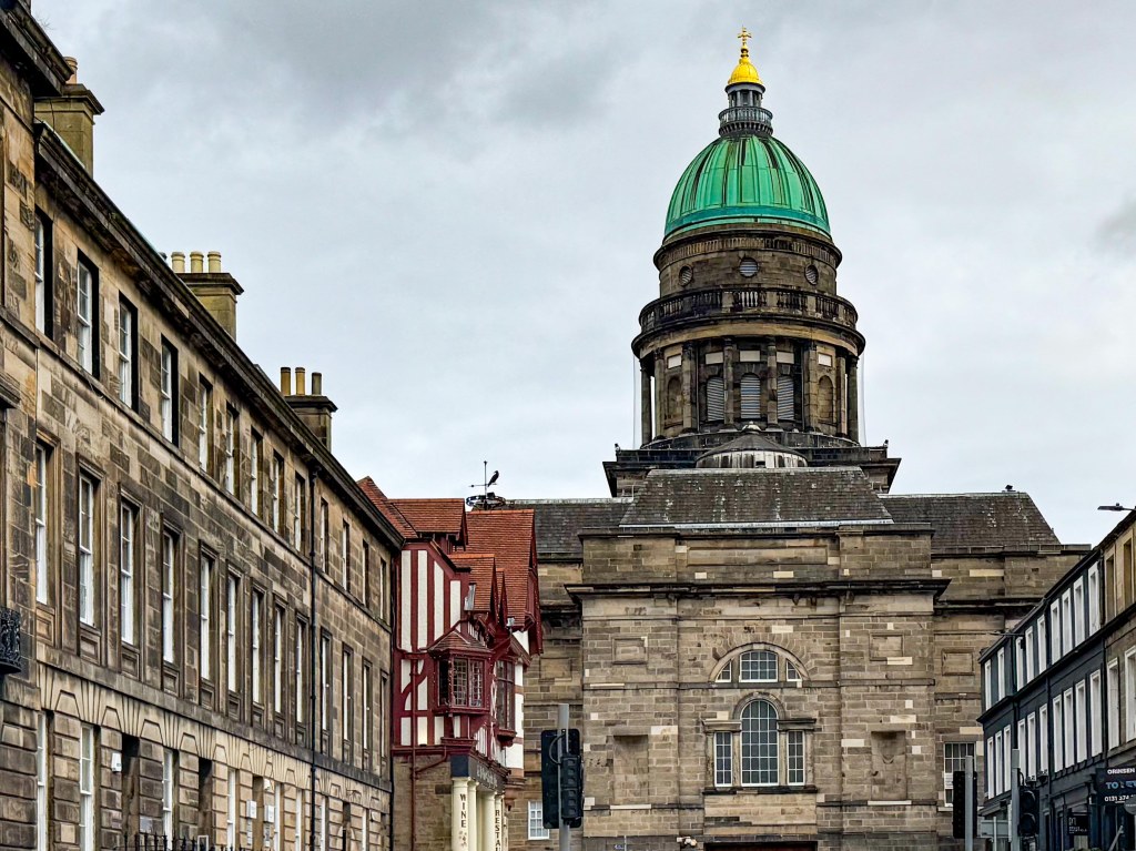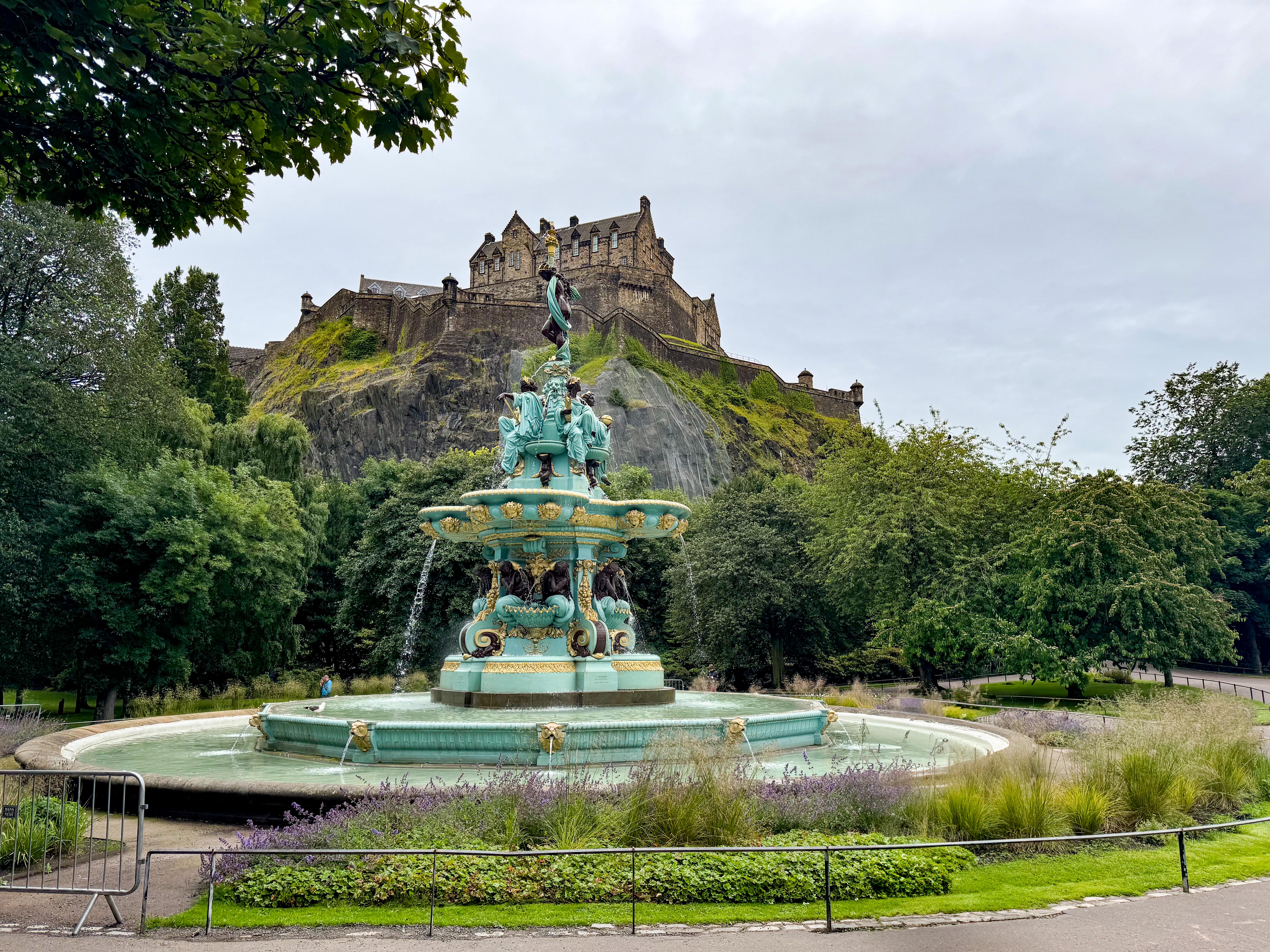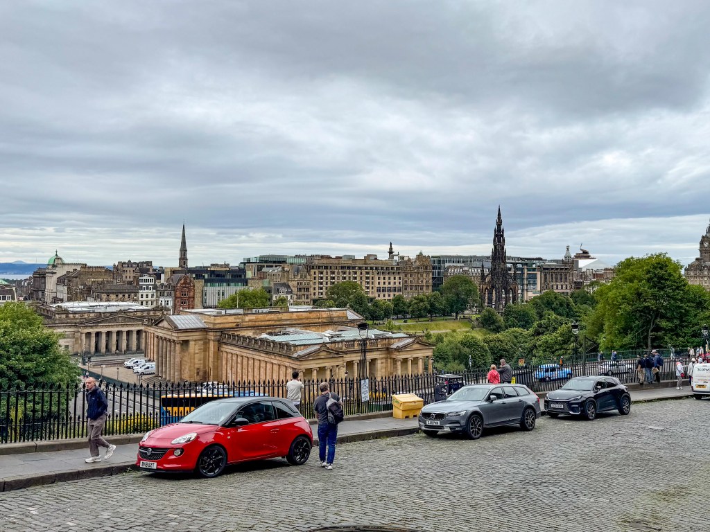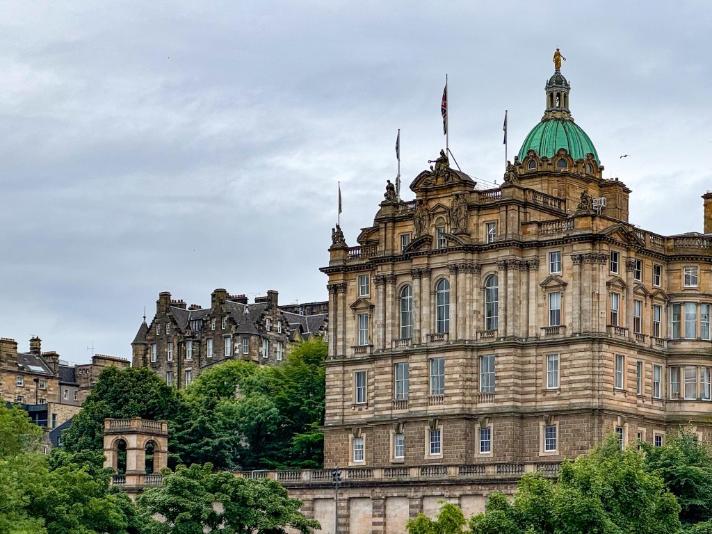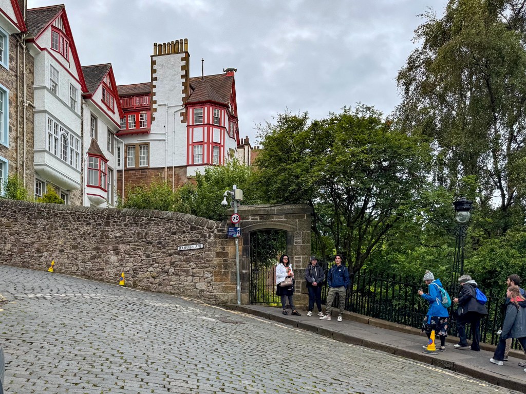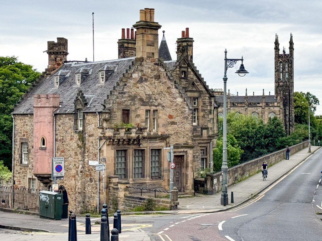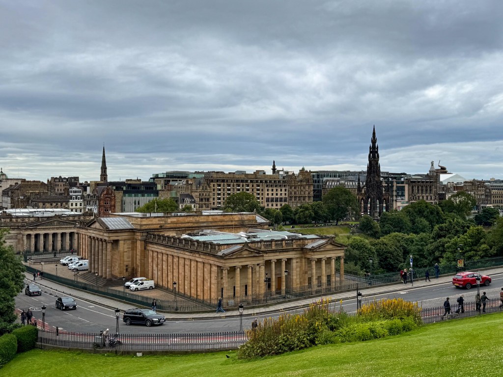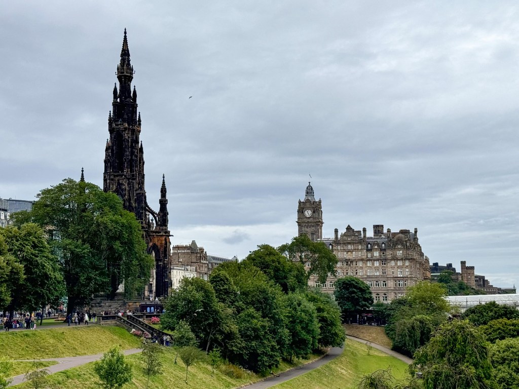 Stopped in Edinburgh today. Caught a tram to Princes Street walked up the mound to the Royal Mile then back down through the gardens and then to Dean Bridge. Cool windy and overcast. A normal summer day someone unkindly said!
