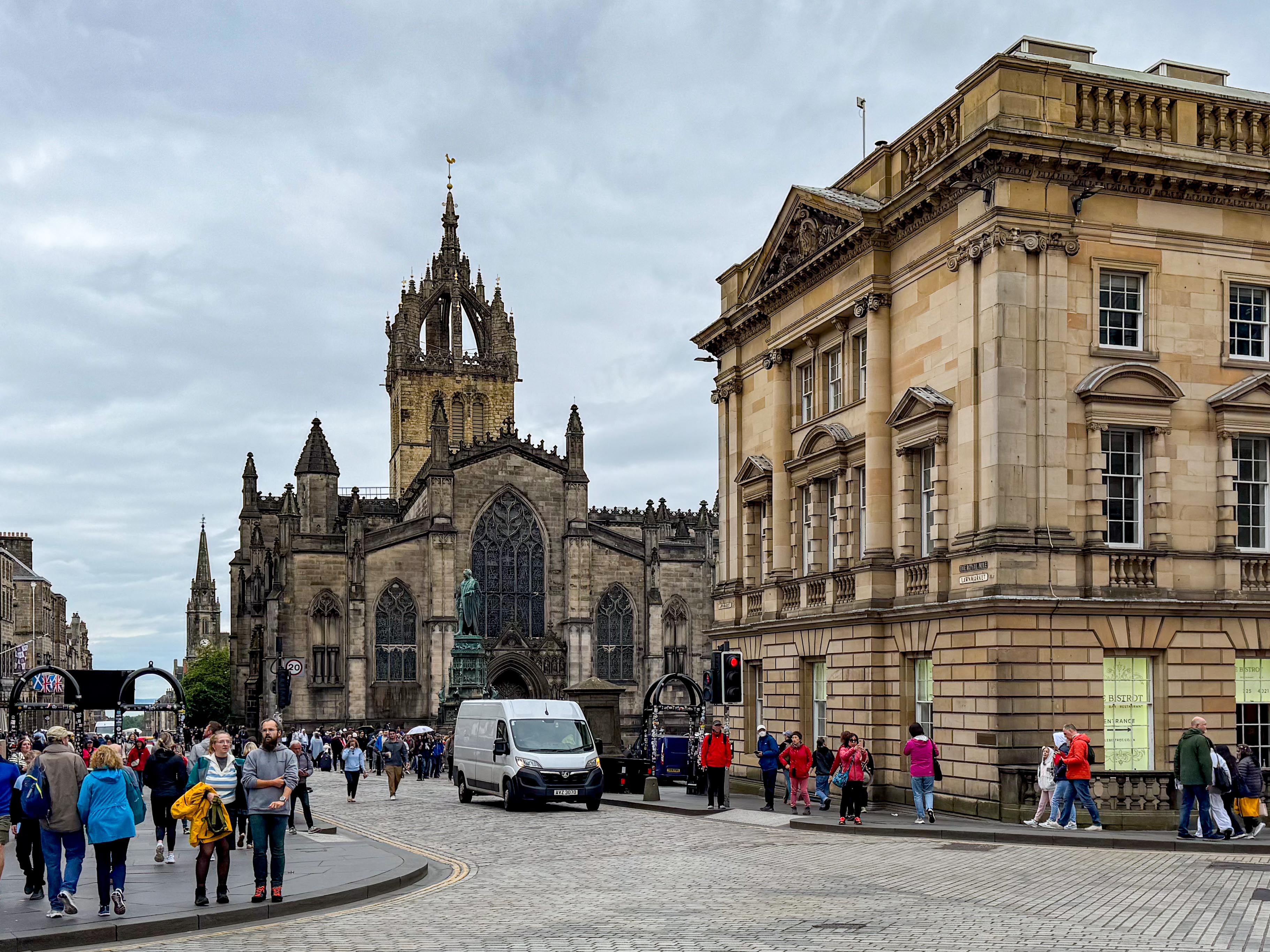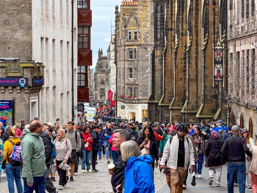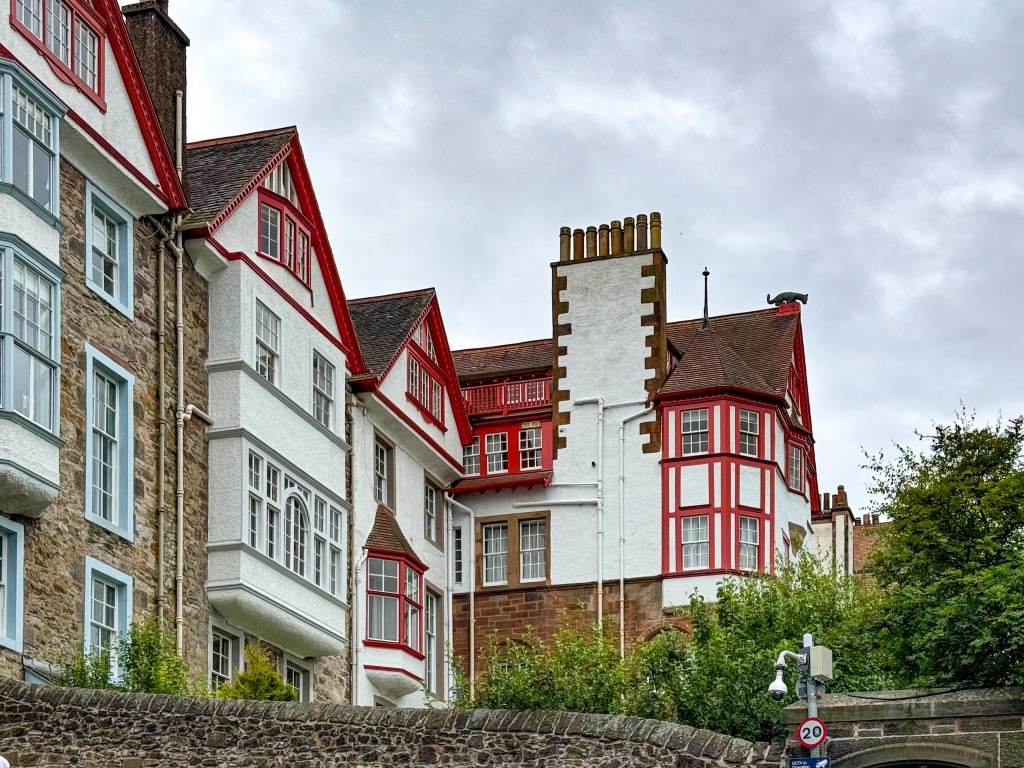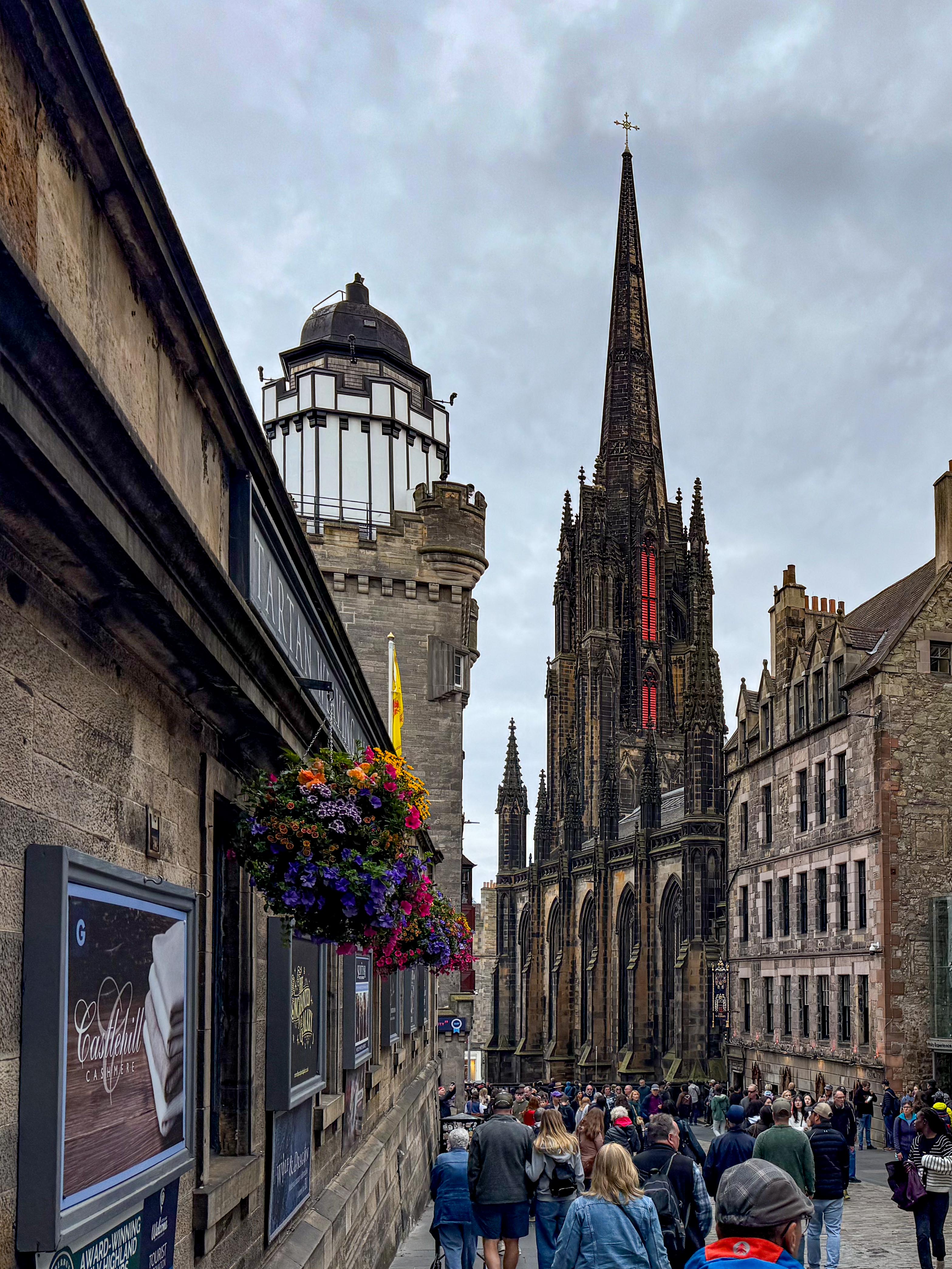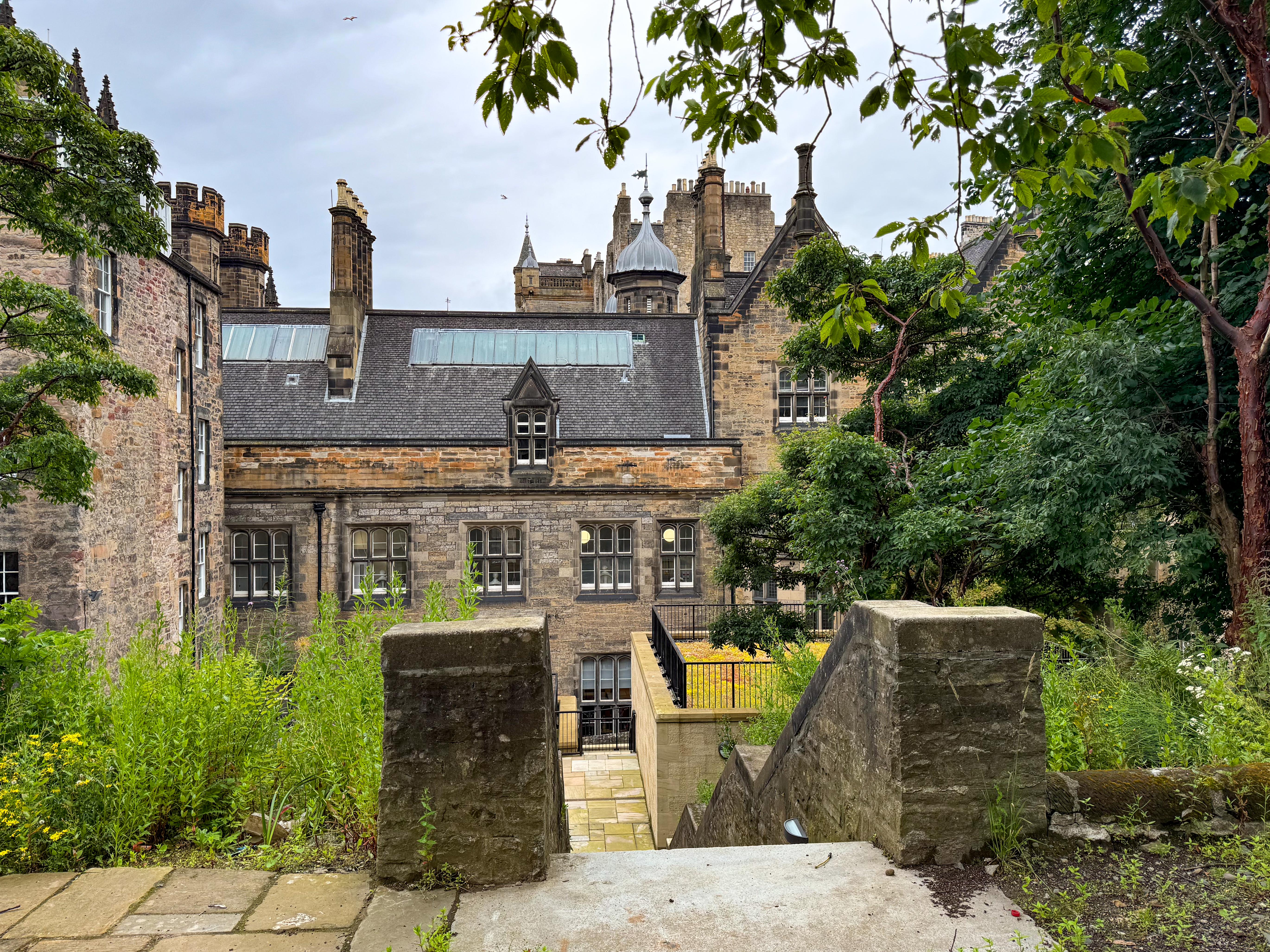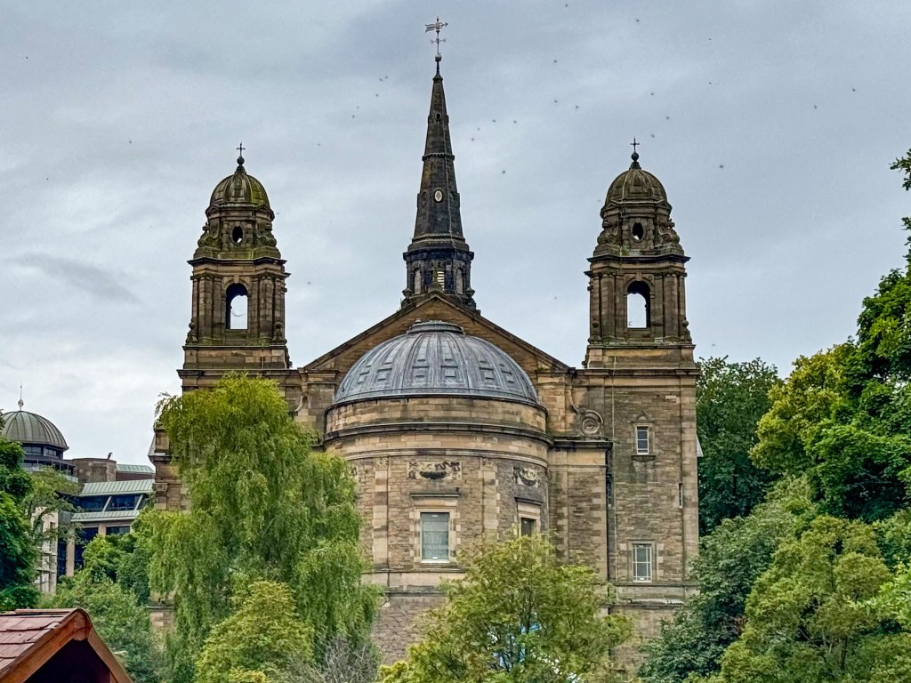 Stopped in Edinburgh today. Caught a tram to Princes Street walked up the mound to the Royal Mile then back down through the gardens and then to Dean Bridge. Cool windy and overcast. A normal summer day someone unkindly said!