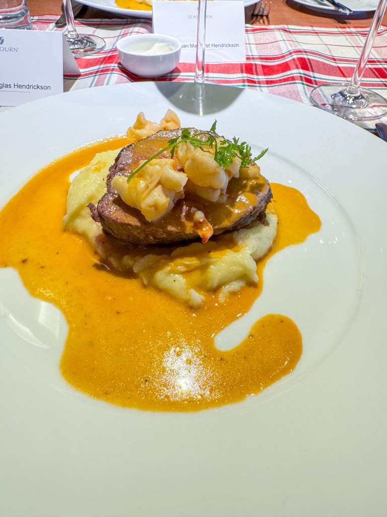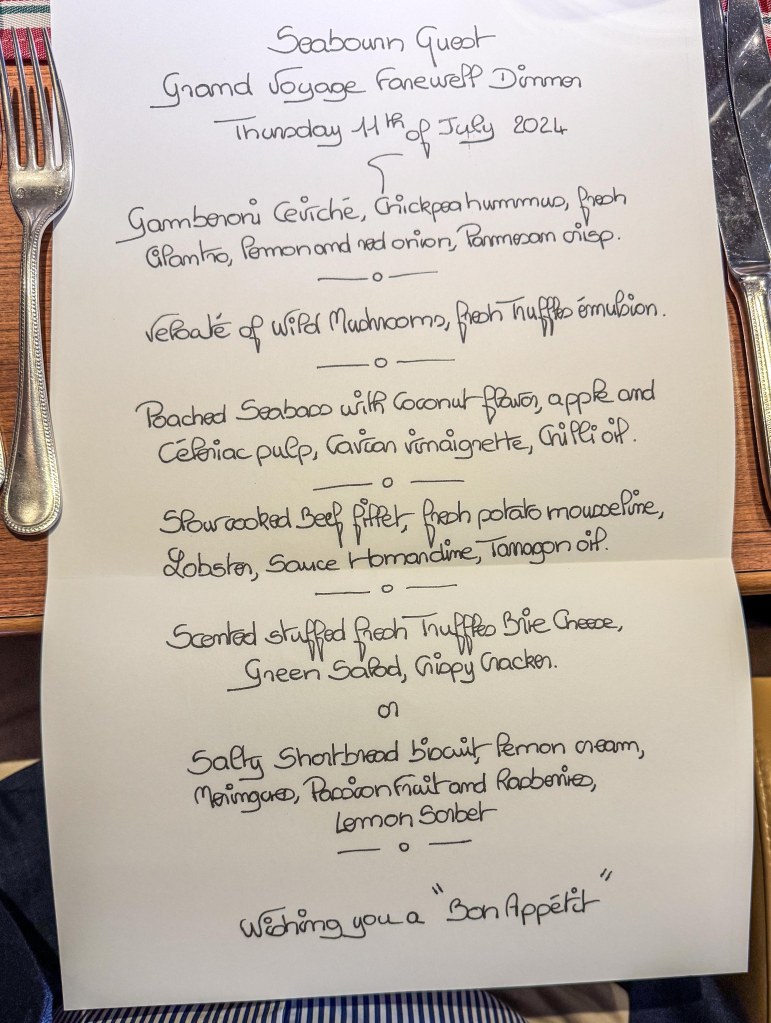 Before dinner we had a special reception where the cruise director gave a speech and then hooked the captain by FaceTime into the AV system to thank us and say farewell; he couldn’t attend in person because he was involved with manoeuvring the ship through a lock and out of the port.