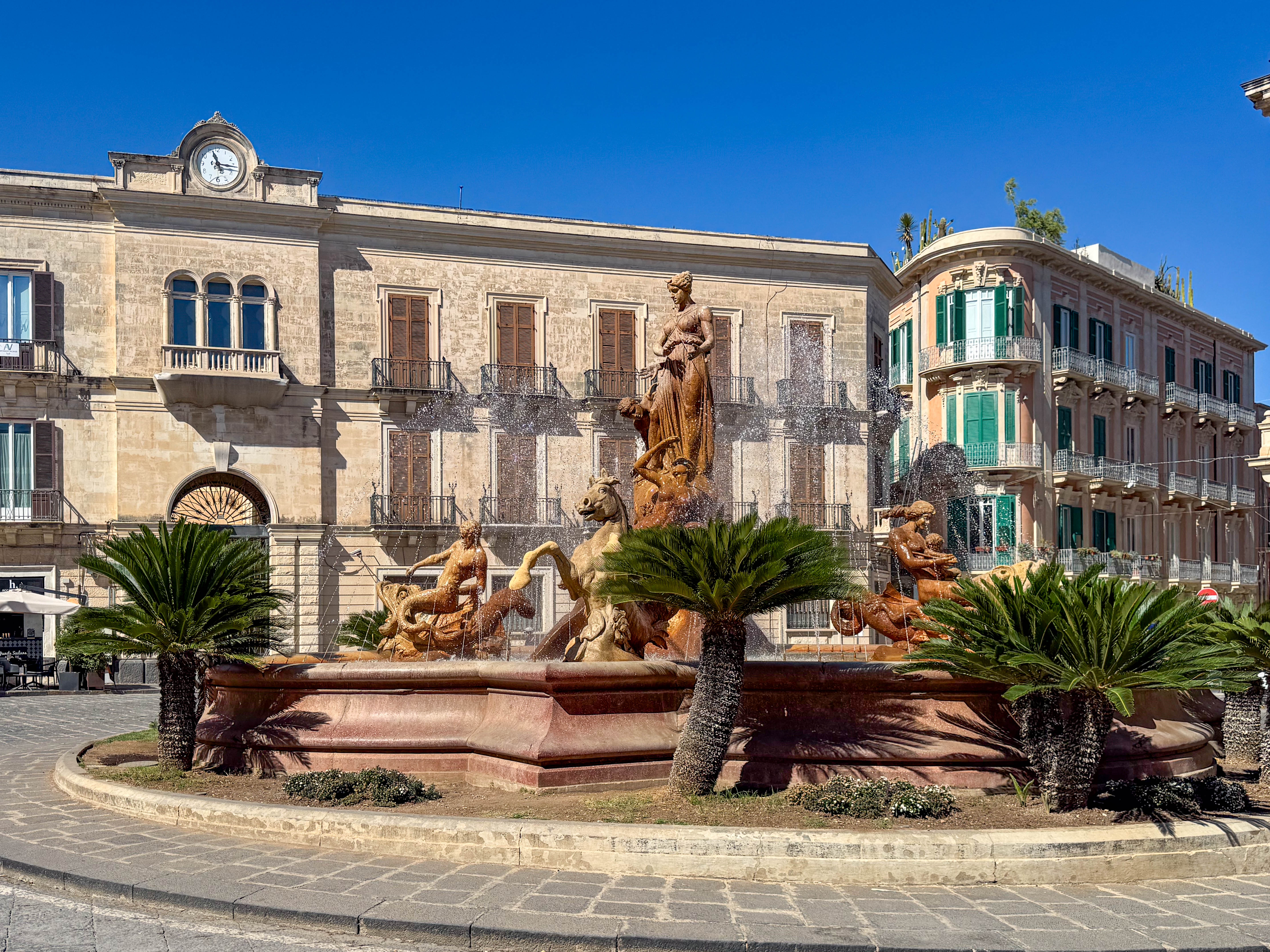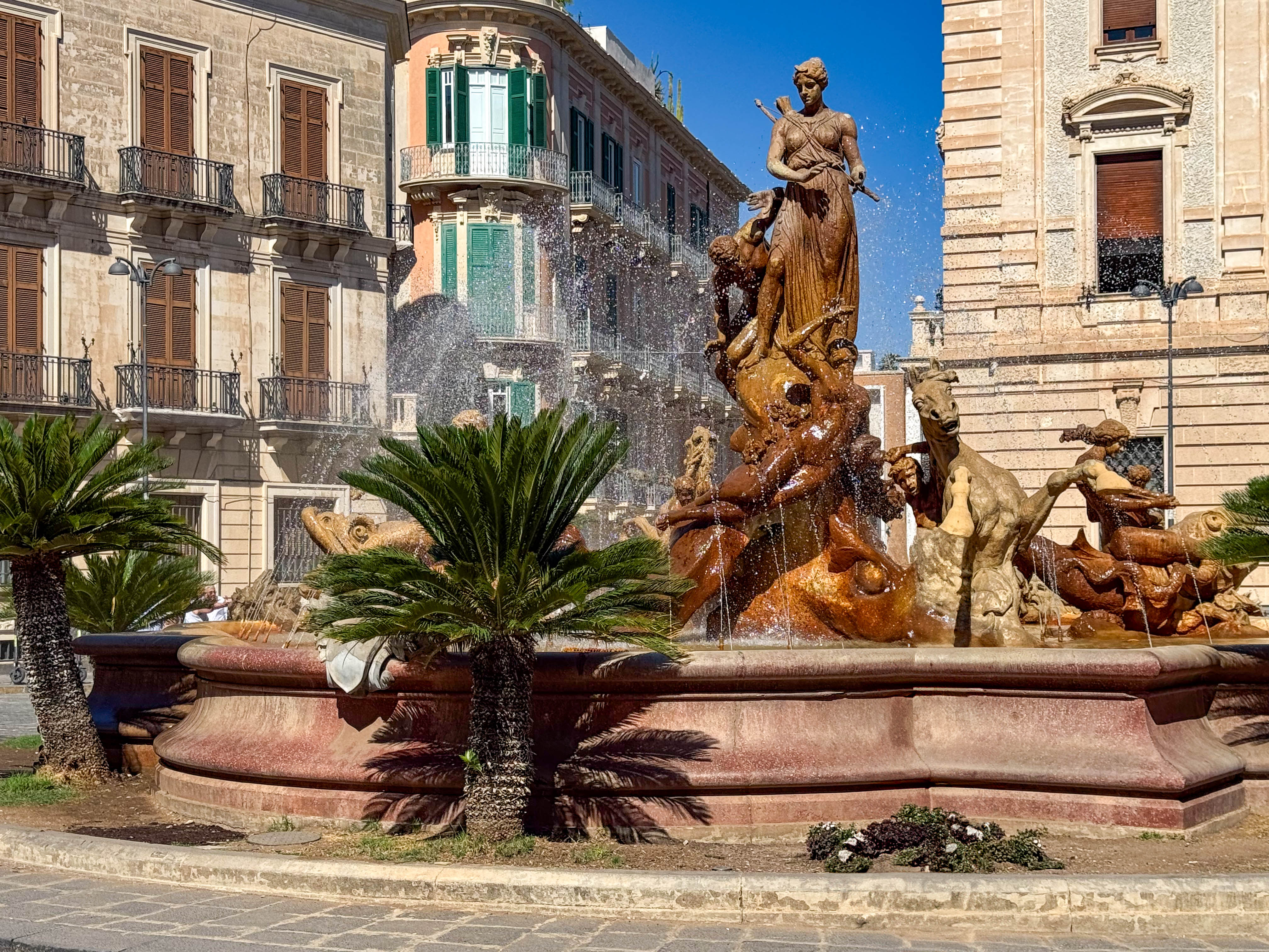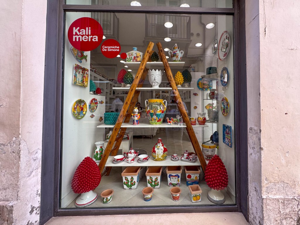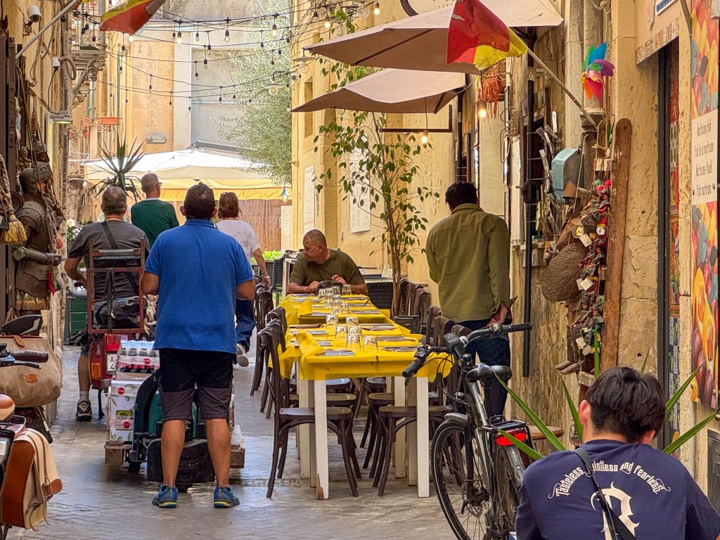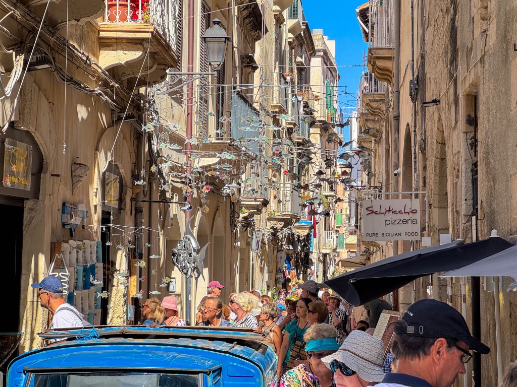 We went ashore around 10am and the weather was perfect – sunny and mid 20s. We spent a couple of hours walking around. The old part of town, on the island of Ortygia, is very picturesque. Fortunately the tourist numbers were less than we have previously encountered.