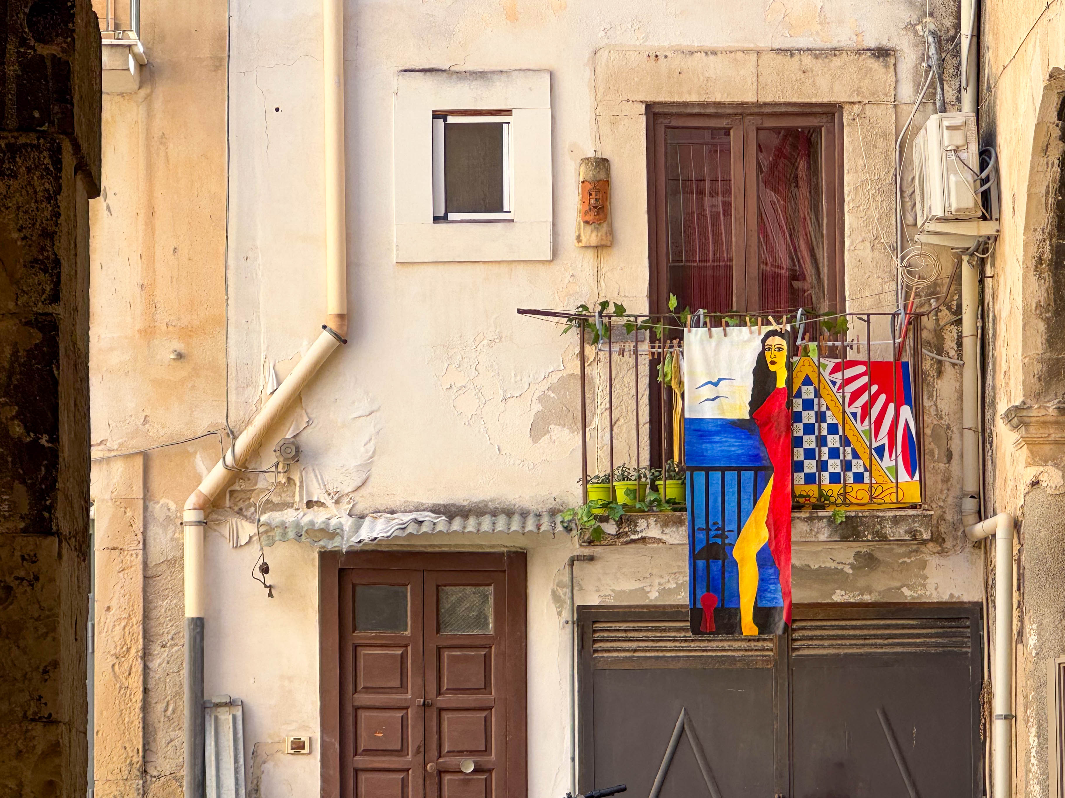 I spotted two towels hanging out to dry on a balcony which made a very interesting composition.