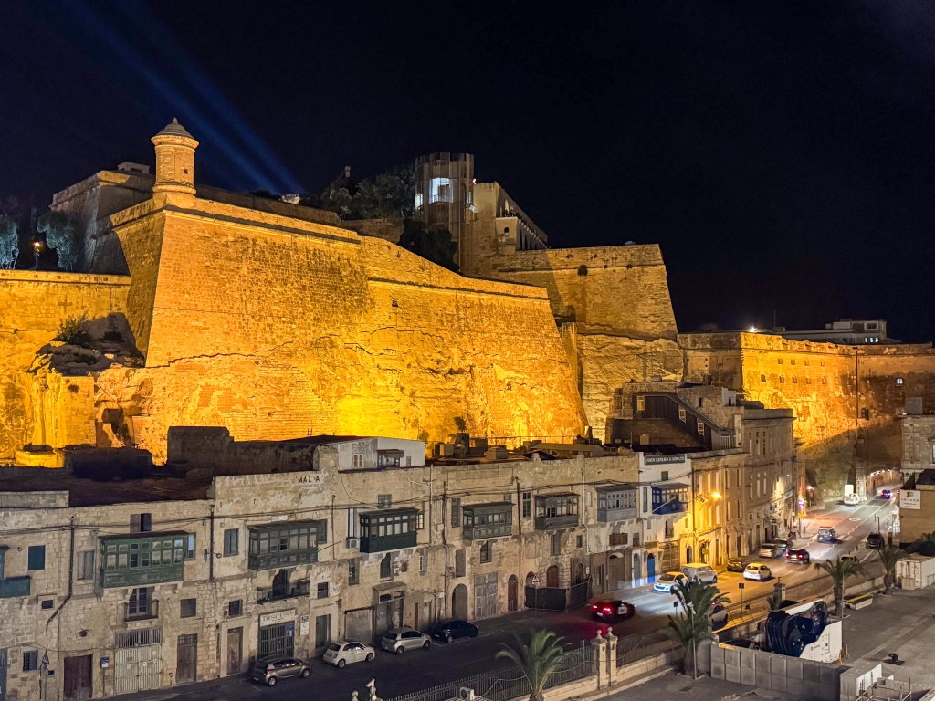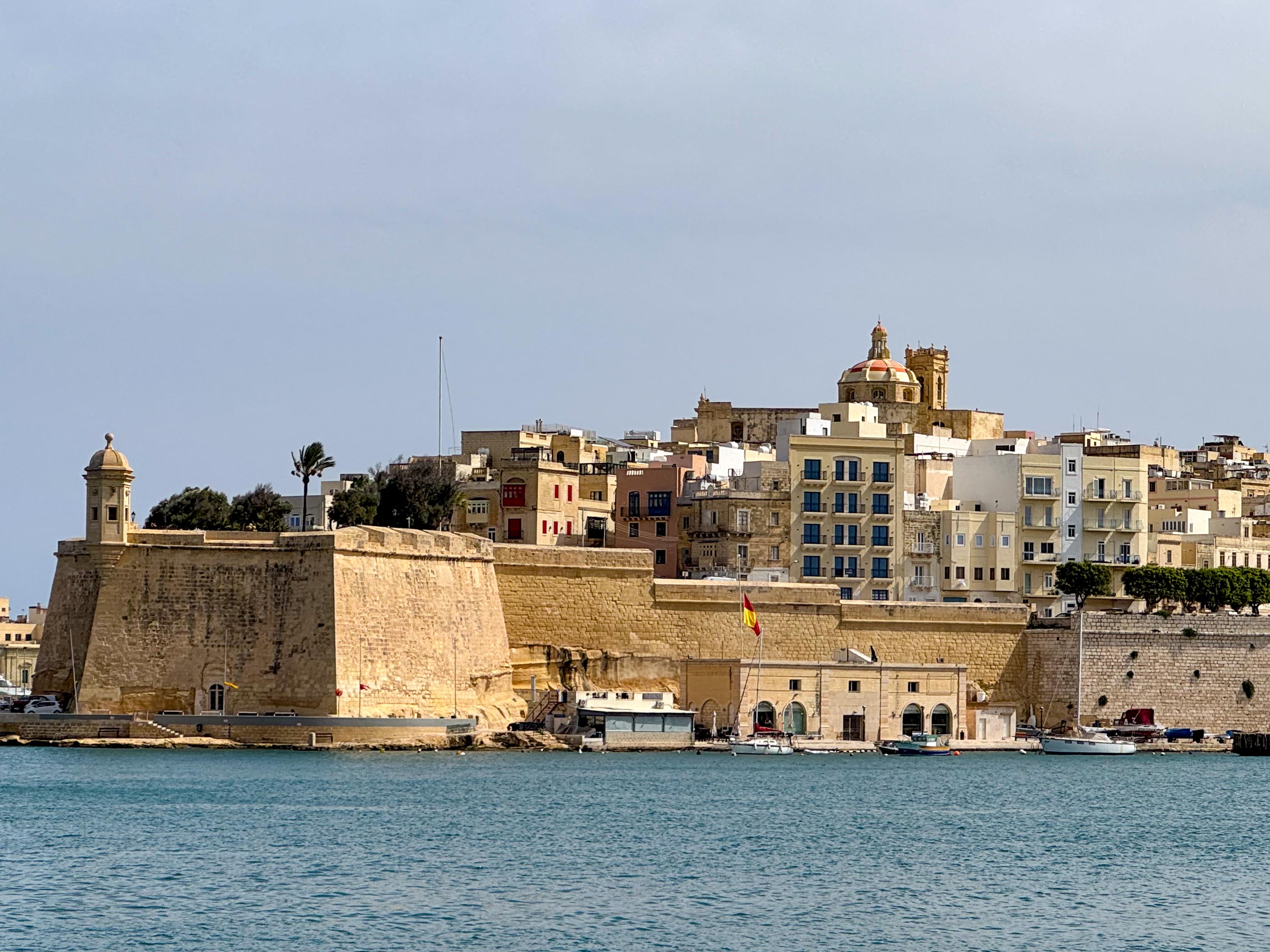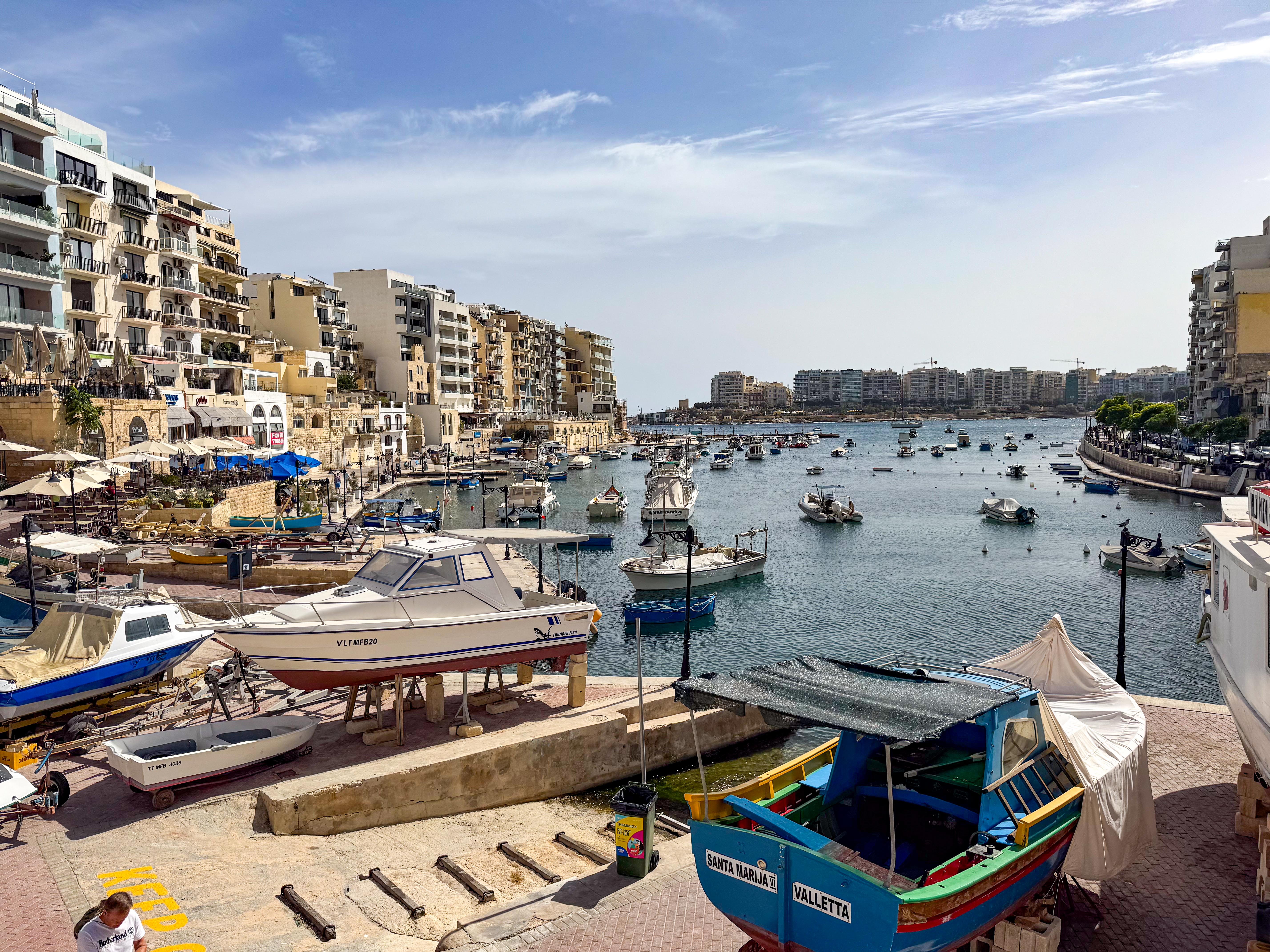 From Marsaxlokk we drove to another town, St Julian’s, for lunch and a taste of Maltese food and wine which was very nice. Our restaurant was on the left hand side of this bay.
