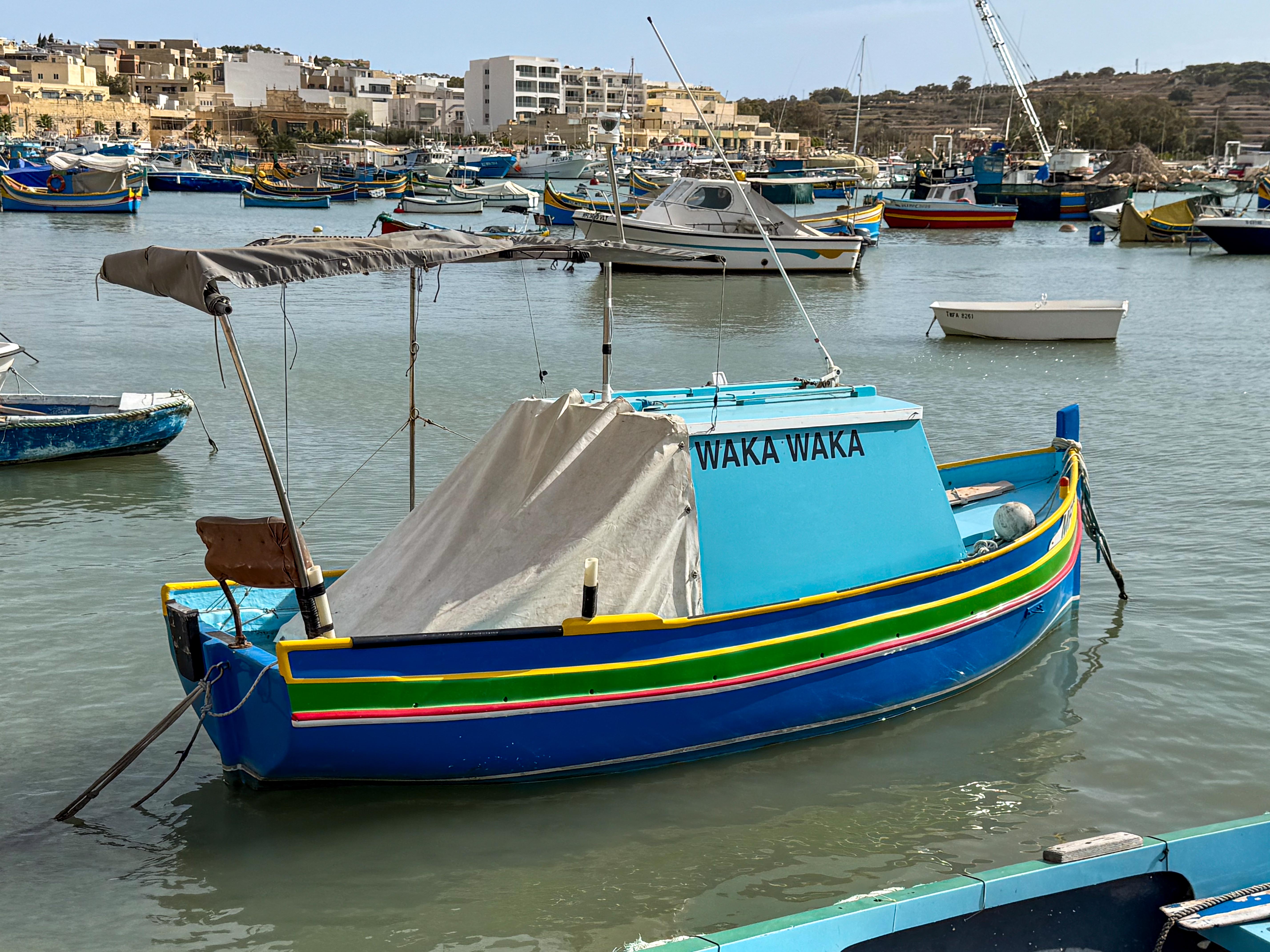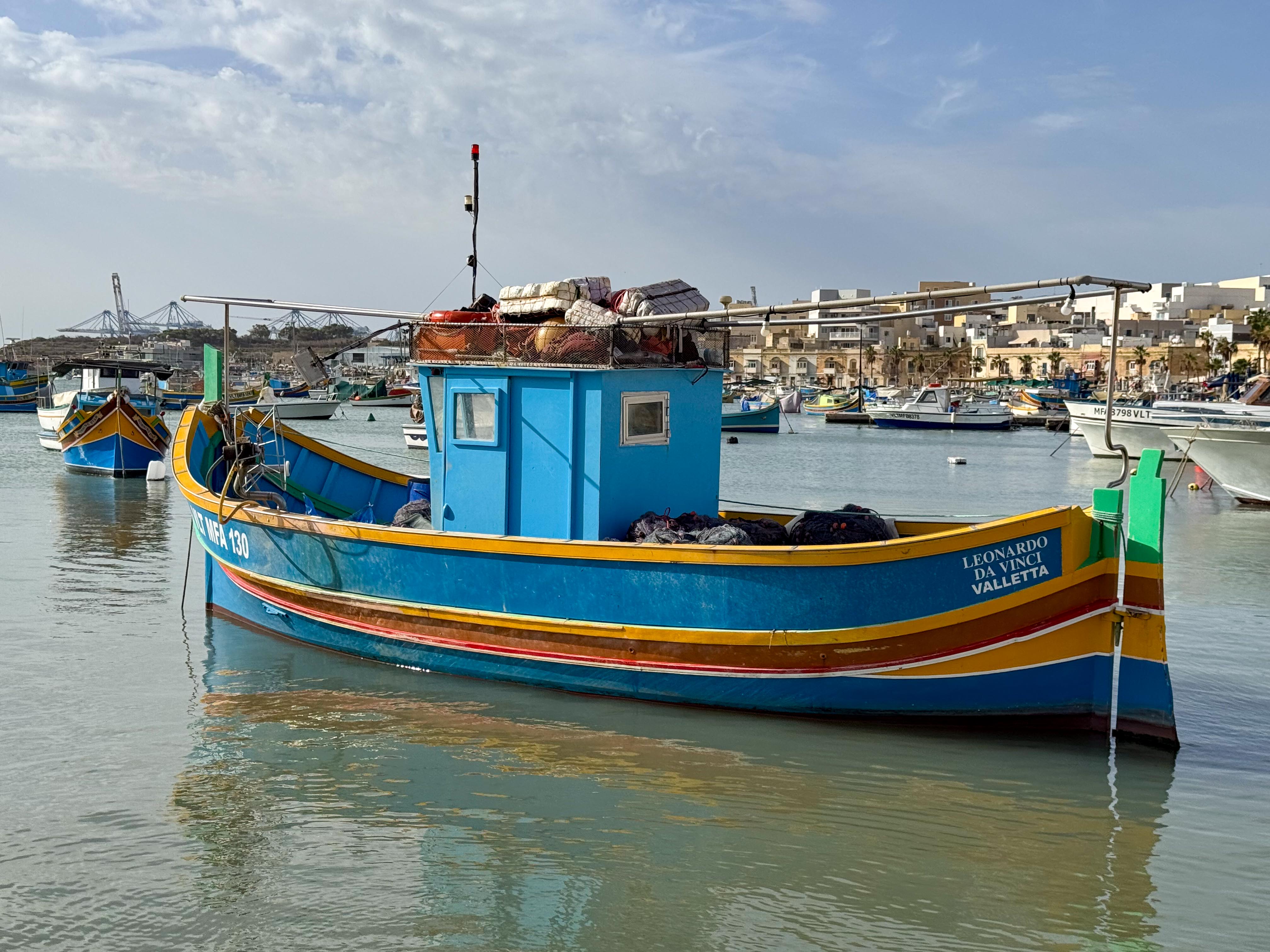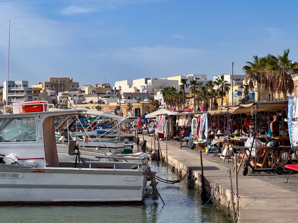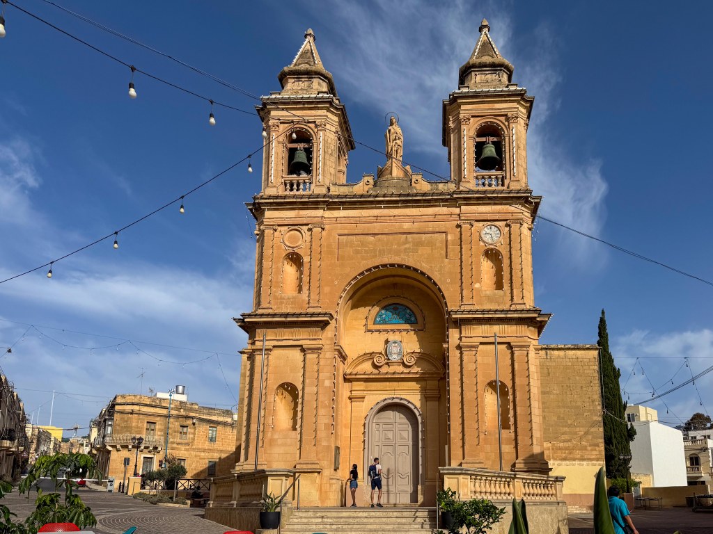 We did another ship’s tour today as we wanted to move away from the capital and see something less busy. The first part of the tour was a bus ride to a fishing village called Marsaxlokk. Before we got to the harbour, we walked past an impressive church – The church of our Lady of Pompeii.