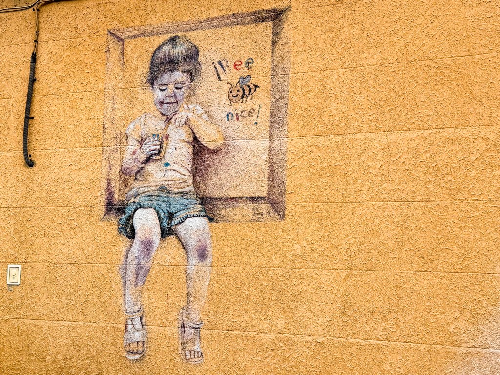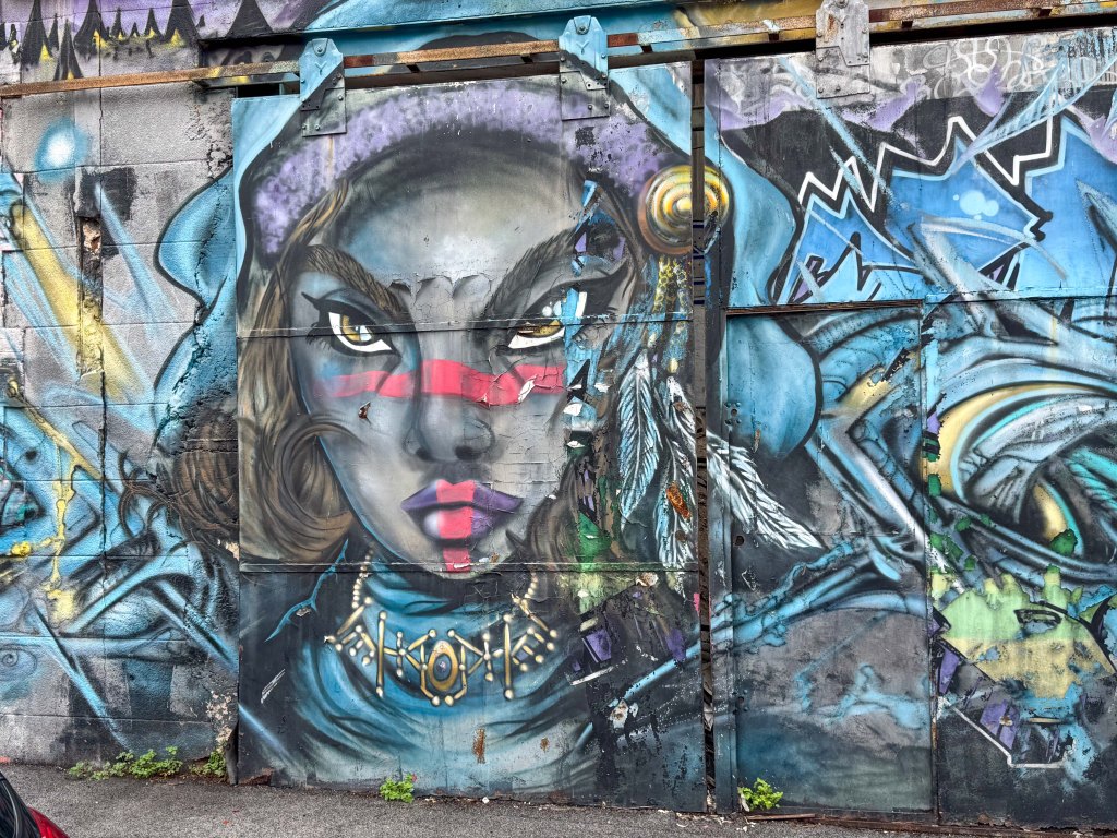 The major attraction to us was the proliferation of high quality street art and large murals decorating some of the buildings. They are too good to view in place in the columns so click on a picture to expand it.
