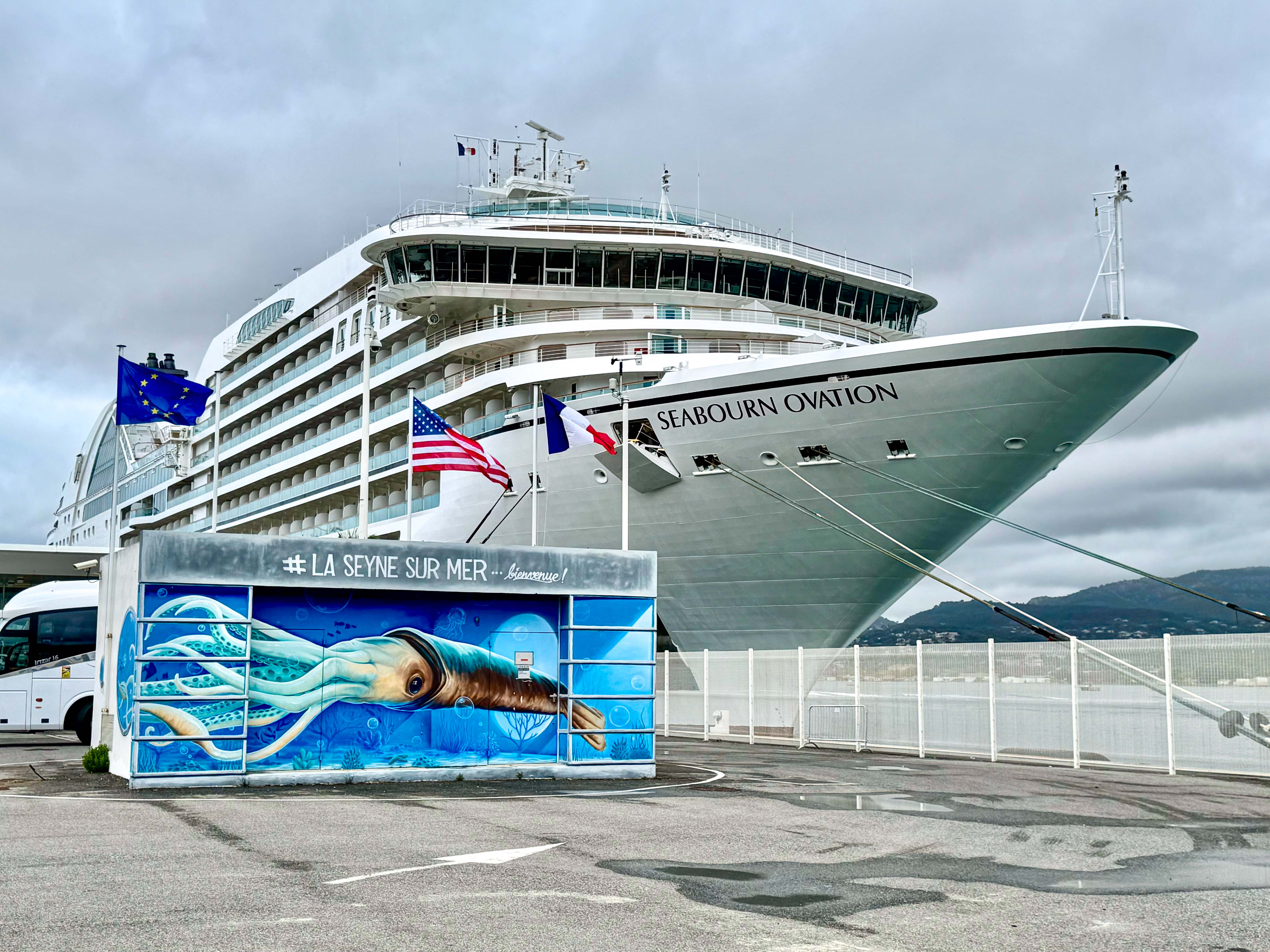 We were meant to go to La Ciotat in France but the weather was forecast be too rough for tender operations so we went to Toulon instead. However, while Toulon is the port, the closest town to the ship was La Seyne Sur Mer.