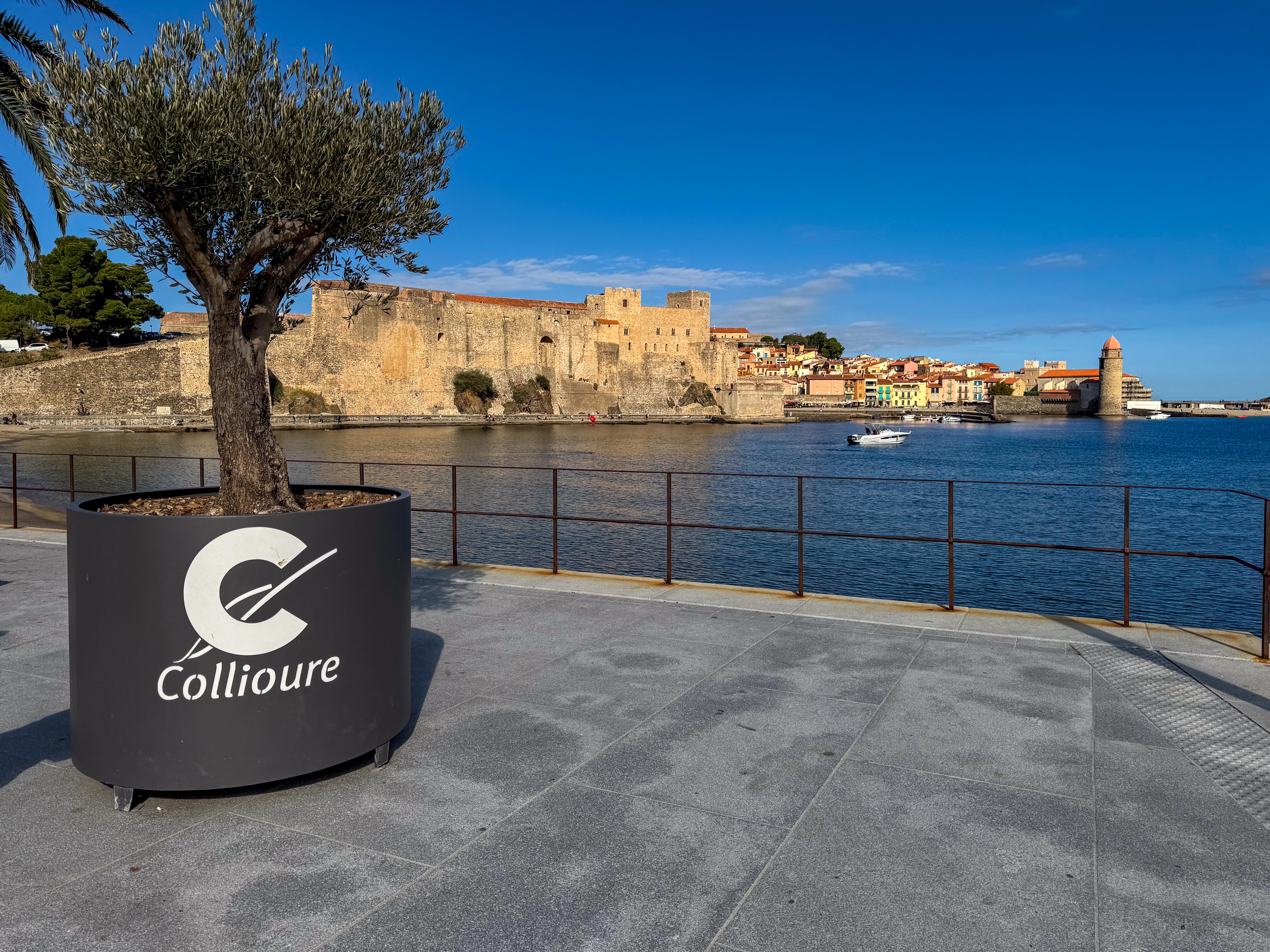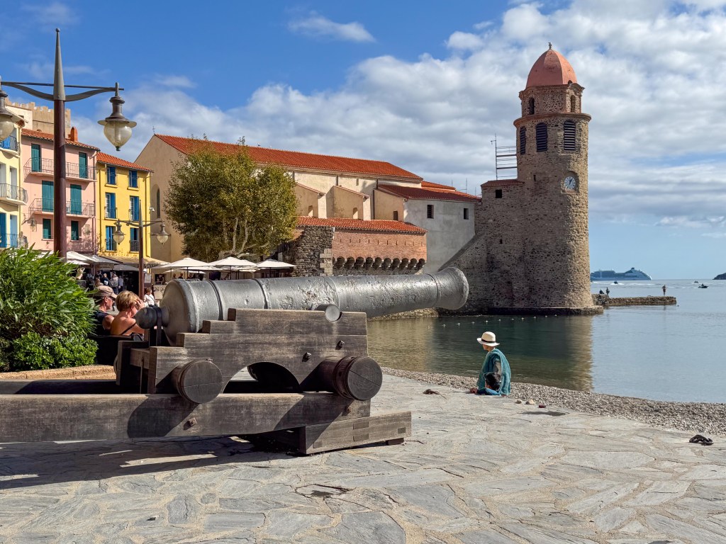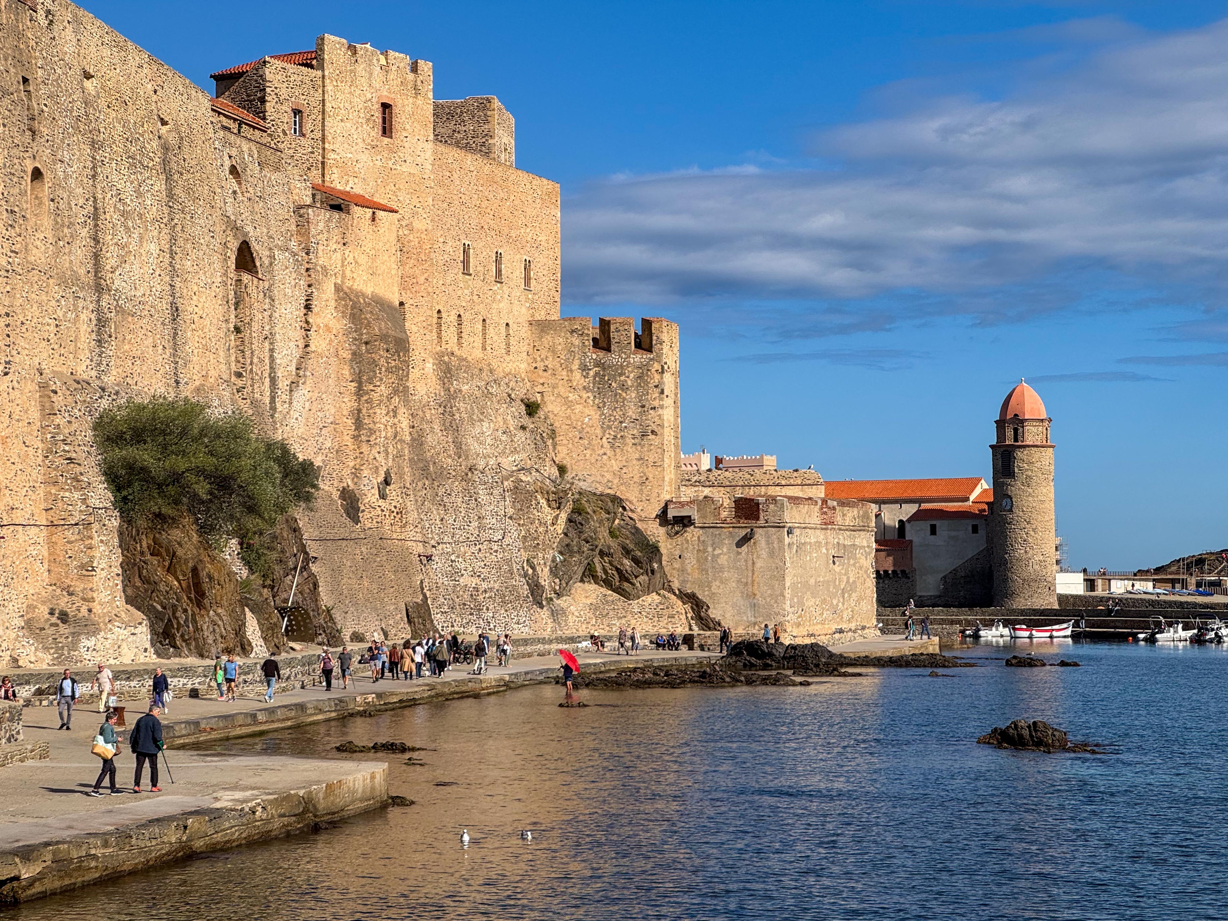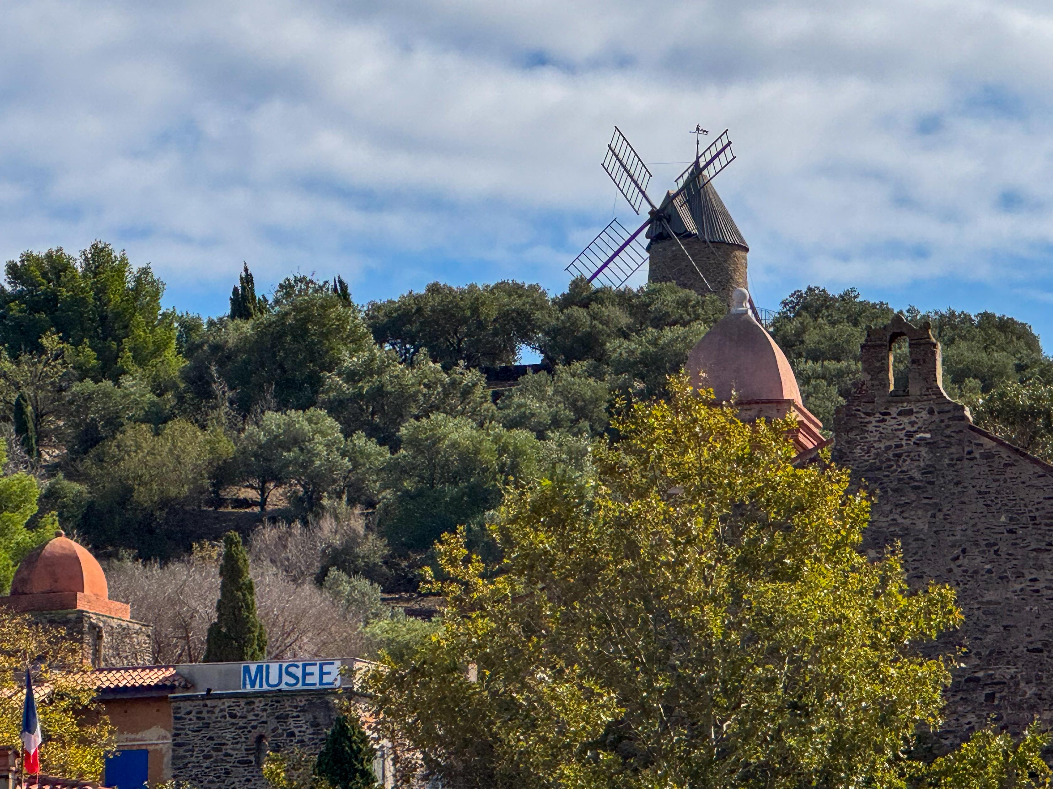 The last time we visited we caught the tourist train but as it was another perfect day, we decided to walk. Together with walking around Collioure, the round trip was 8Km – Sue’s new hip is getting a good workout!