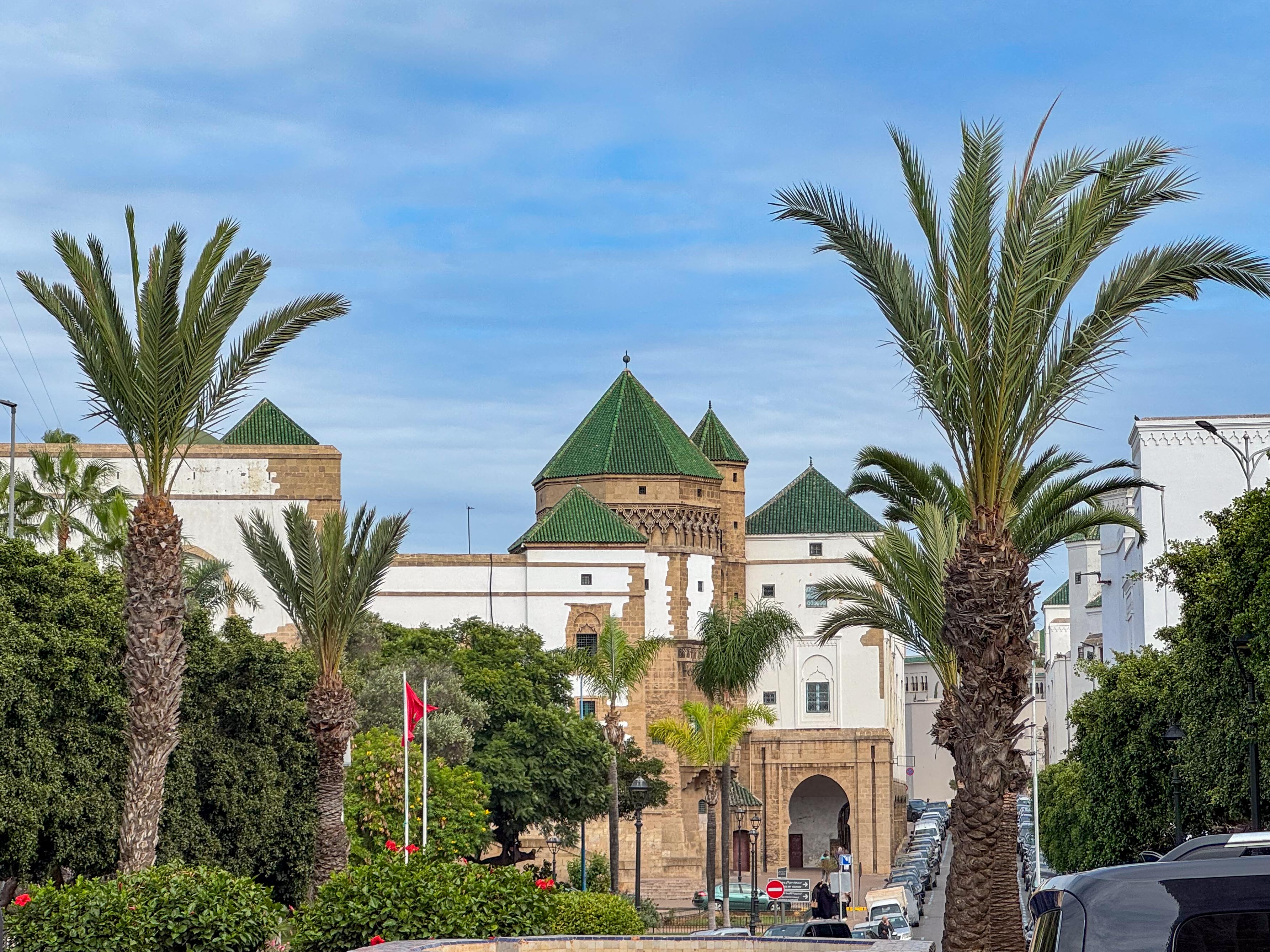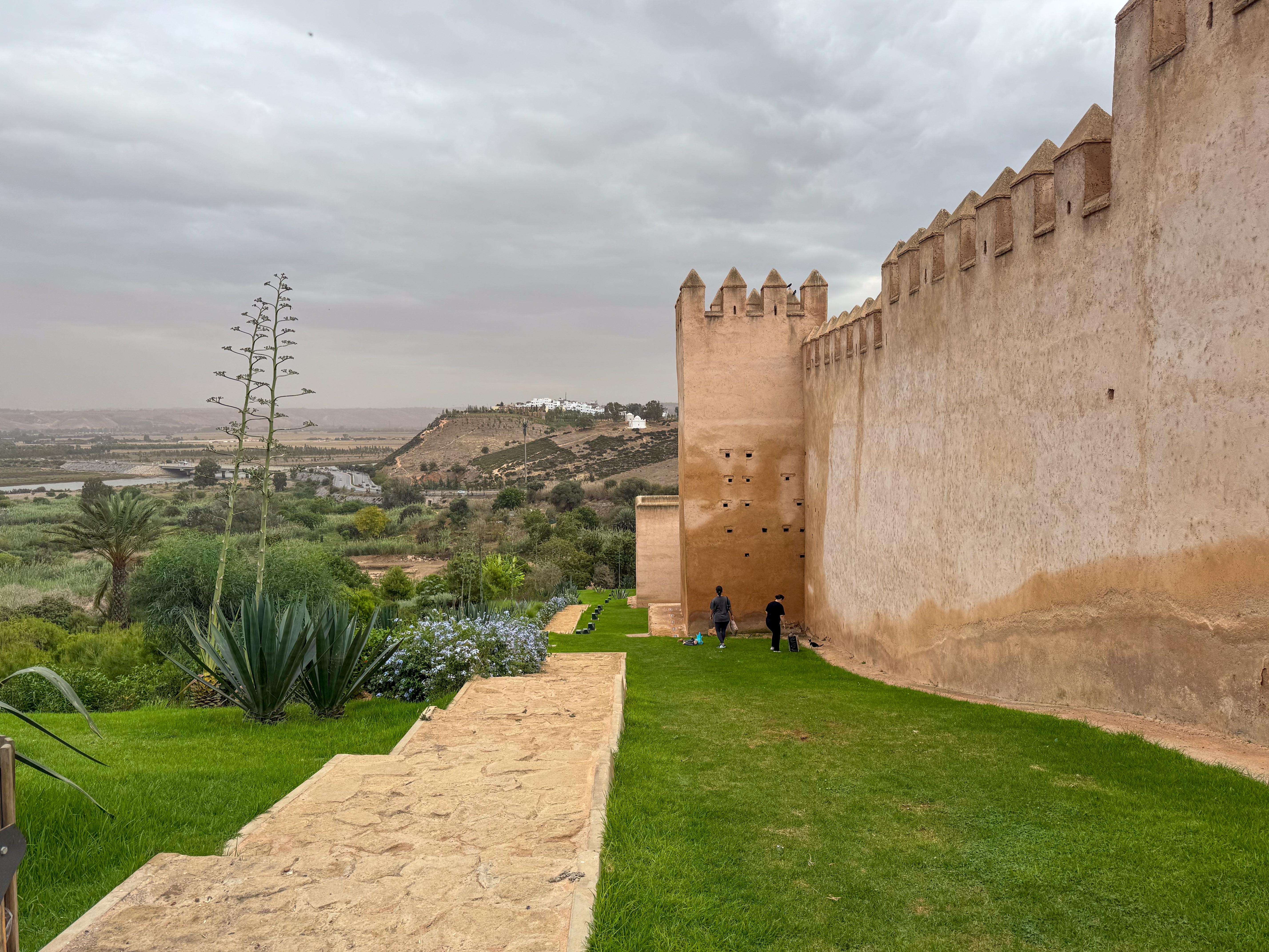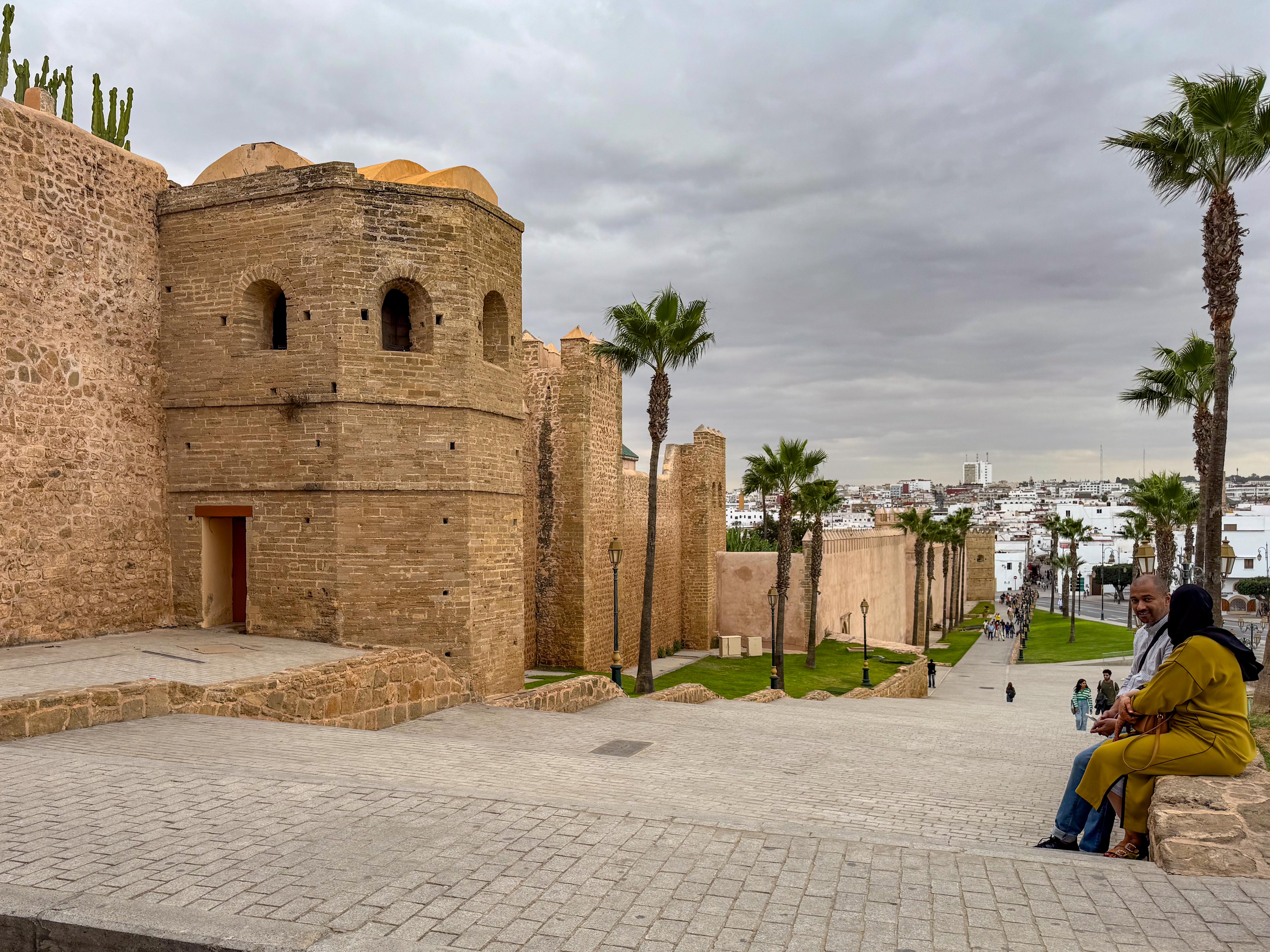 We were unable to visit the Mohammed VI Tower due to traffic restrictions around the King’s visit,  Similarly we were unable to visit the palace.  Instead we stopped off at the Chellah, a medieval fortified Muslim necropolis and ancient archeological site.  We didn’t go in but walked around the perimeter for a panaoramic view with Mohammed VI Tower in the background.