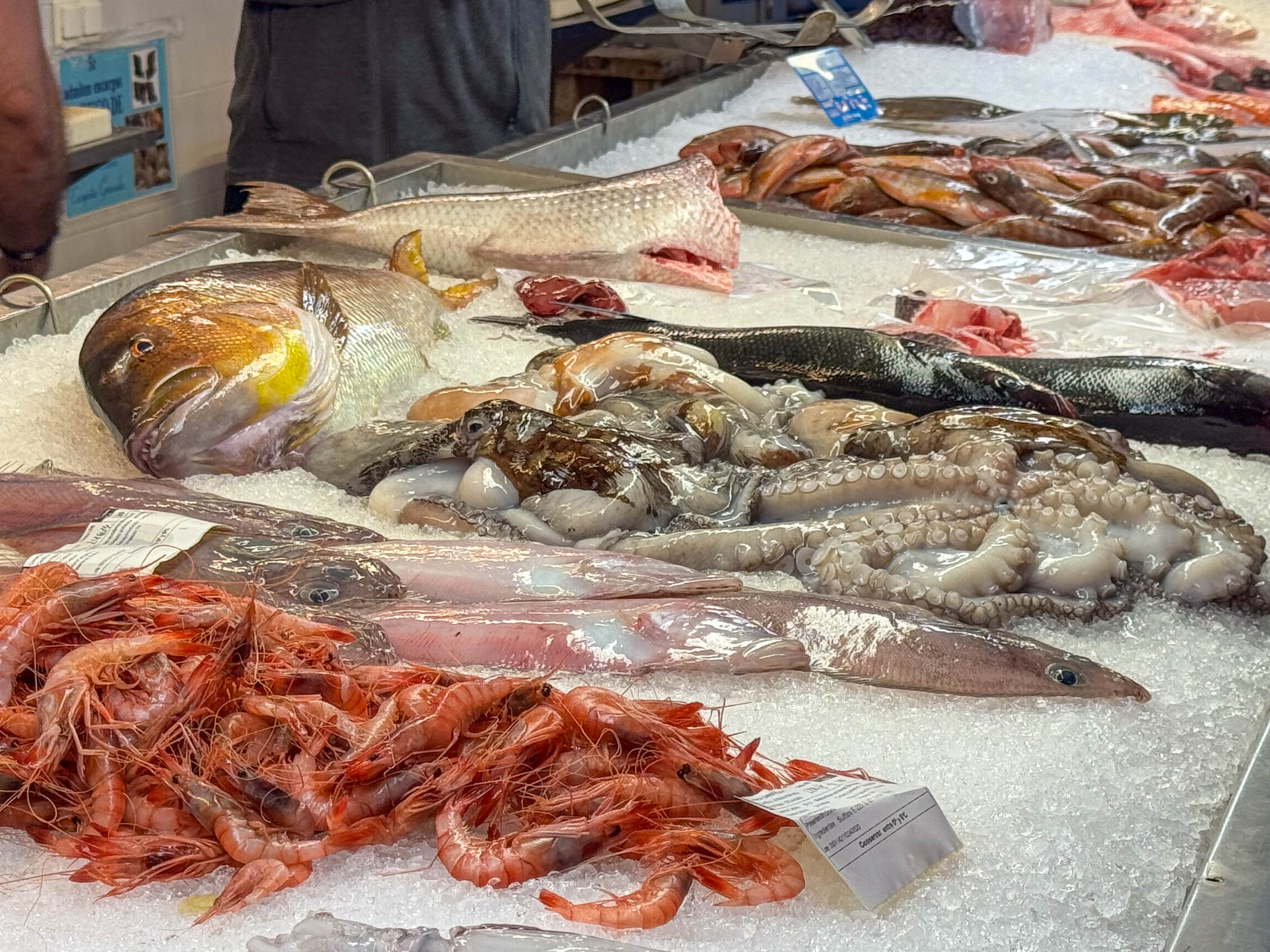 After selecting a range of fruit, vegetables, cheeses and charcuterie we headed to the fish market.