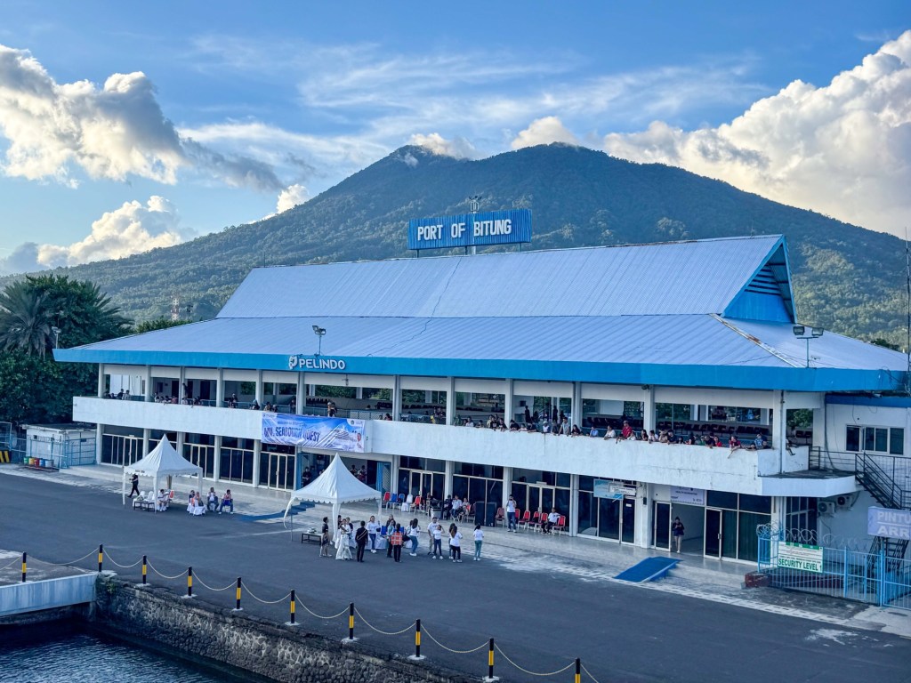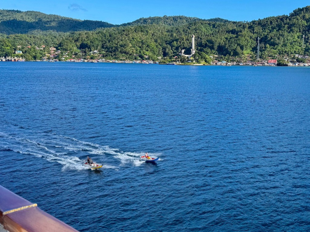 Bitung is on the north eastern tip of Sulawesi and is rarely visited by cruise ships. We were the first for 2025 and typically only four or five ships visit a year. The local people were particularly friendly and inquisitive and nearly all would say hello and there was lots of tooting and waving. They were very excited to see visitors.