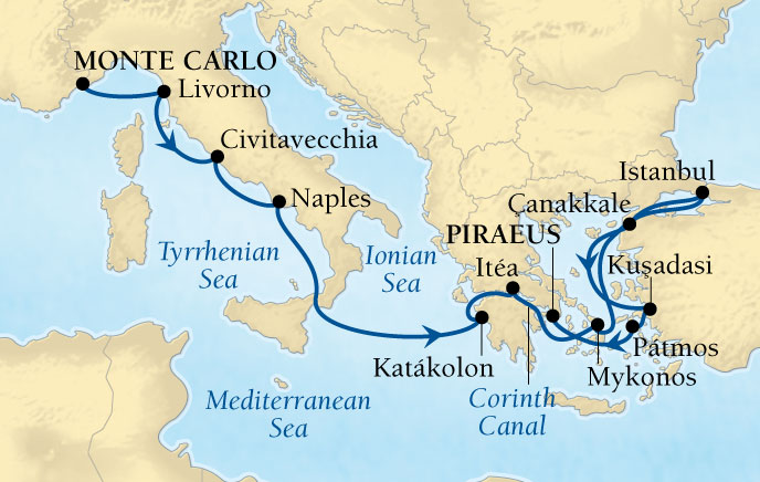 We start in London, sailing from next to the Tower of London, along the Thames and across to France. We then follow the coastline through to Spain and Portugal and enter the Mediterranean where we visit many places, including transiting the Corinth Canal and having an overnight stay in Istanbul. Once we reach Athens, we fly to Venice and spend three nights there, where we meet up with some friends and then we all board the Seabourn Spirit, another of the “little sisters” for a 12 day cruise to Barcelona.